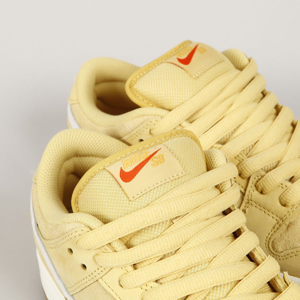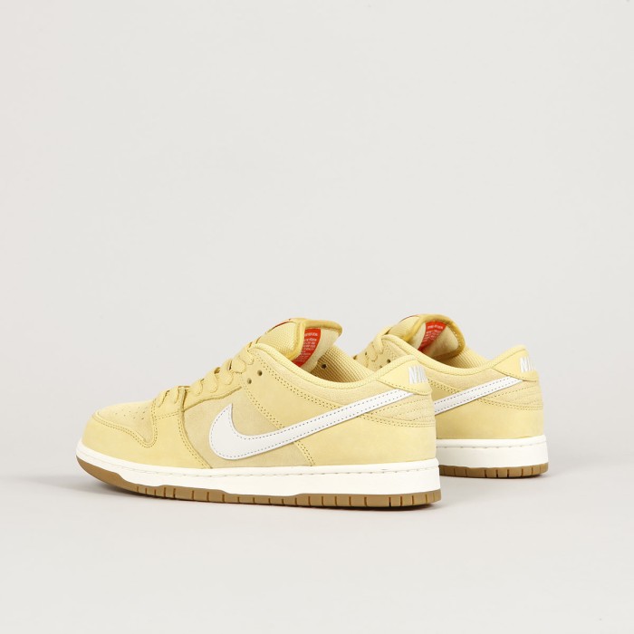 Model bot Nike SB Dunk Low Pro v barevném provedení Saturn Gold Sail z limitované kolekce Orange label, nebo také nazývaná jako ISO řada ( in skateshops only). Nízká verze má svršek vyrobený ze semiše, hladké kůže s perforovanou špičkou a bílého semišového swooshe. Odlehčená cupsole podrážka má navíc Zoom Air polštář na tlumení nárazů a tentokrát má barevné provedení Gum. Klínek na jazyku zajišťuje dokonale padnoucí střih, který je zárukou vynikajícího kontaktu s prknem a jeho ovládání. Tlustý textilní jazyk s logem Nike SB a polstrovaný lem kotníku pro větší pohodlí.