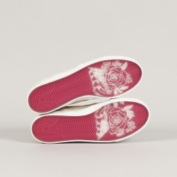 Boty Nike SB Original Plus Janoski SE s kulatými tkaničkami jsou zpět v limitovaném Quickstrike provedení. Colorway je přezdívaná "Pearl White Pony Hair", oficiální název barvy Pearl White/ Pearl White - Summit White - Mystic. Přepracovaný svršek z imitace zvířecí srsti, odkazuje na srst poníka, klasická vulc podrážka se stromečkovým vzorem. Podrážka je zespod čirá, skrz prosvítá bílá růže na růžovém pozadí. Na jazyku je nášivka Nike Skateboarding a z boku vyšitá Nike fajfka. Uvnitř vložka s Zoom Air pošltářem na tlumení nárazů s grafikou květin Digi-Floral.