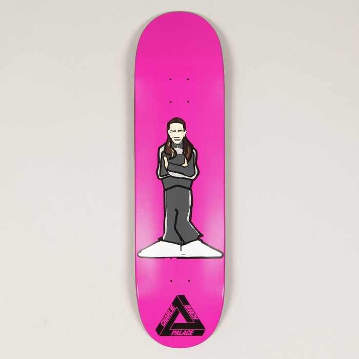 Pro model Charlie Birch Pro Drawing Deck ve velikosti 8.5 palců s grafikou kreslené postavičky. Na zadní patce logo Palace. Ke každé desce grip zdarma. Vrchní barvená strana desky Palace se může lišit oproti fotce.