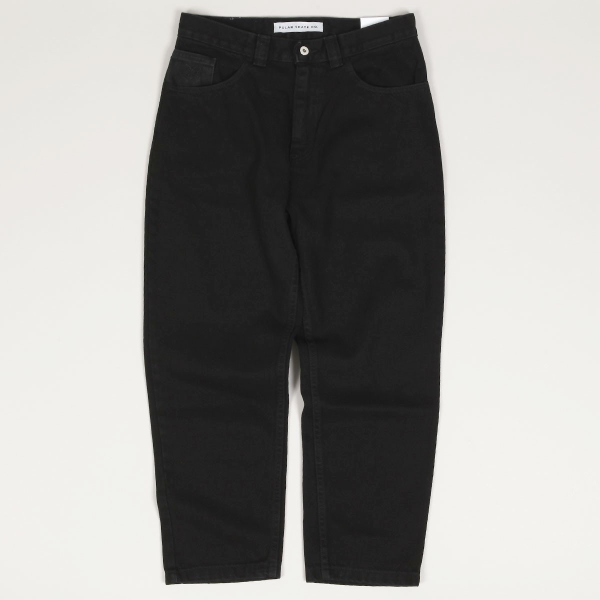 Kalhoty Polar Skate Co. s názvem 92 Denim Jeans ve černé barvě. Mají širší retro střih se zúženými nohavicemi. Zapínáni na zakrytý zip a knoflík. V pravé kapse nášivka smajlíka s cigaretou. Vyrobeno ze 100% bavlny, 435 g. Vyrobeno v Polsku.