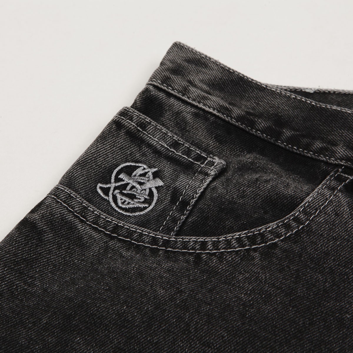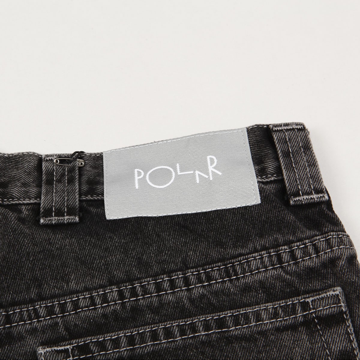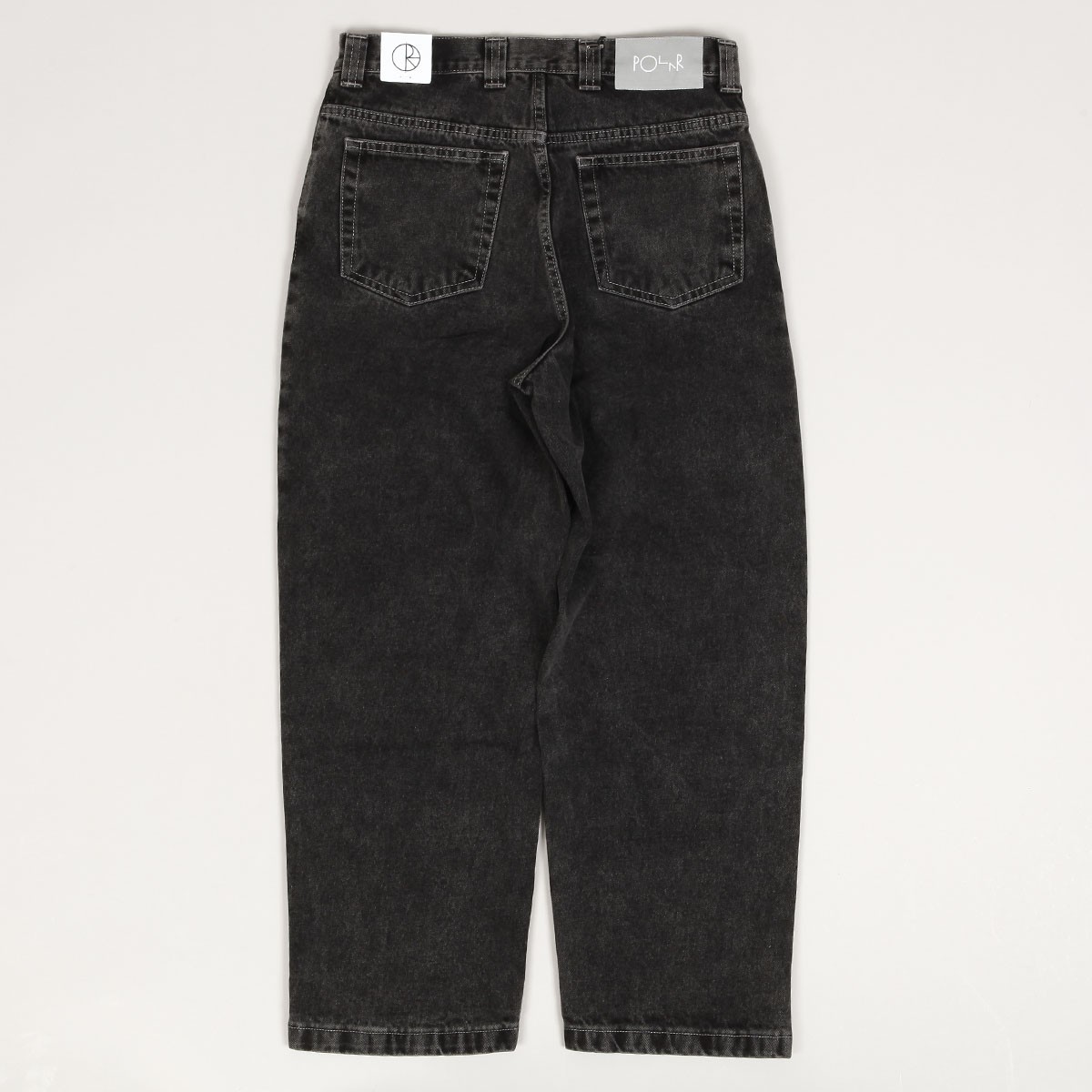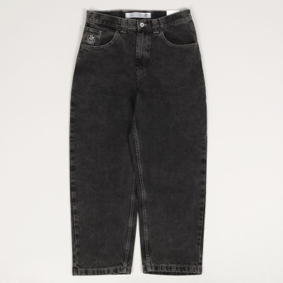 Kalhoty Polar Skate Co. s názvem 93 Denim Jeans v seprané černé barvě. Mají širší "Semi Baggy" střih s rovnými nohavicemi. Zapínáni na zakrytý zip a knoflík. V pravé kapse nášivka kluka. Vyrobeno ze 100% bavlny, 435 g.