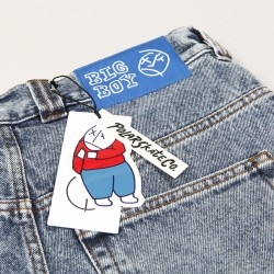 V pravé kapse mají nášivku smajlíka. Zadní lem pasu zdobí kontrastní label s nápisem Big Boy.