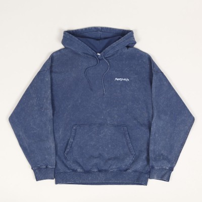Mikina Polar Skate Co. s názvem Frank Acid Surf Logo Hoodie v tmavě modré barvě s celoplošným batikováním. Na levé straně prsou natištěný nápis Polar Skate Co. Klasický Regular Fit střih s kapucí stahovatelnou šňůrkami, mírně sníženými rameny a vpředu velkou kapsou na ruce. Materiál 100% bavlna, unitř jemně broušená v gramáži 350 gsm. Vyrobeno v Portugalsku.