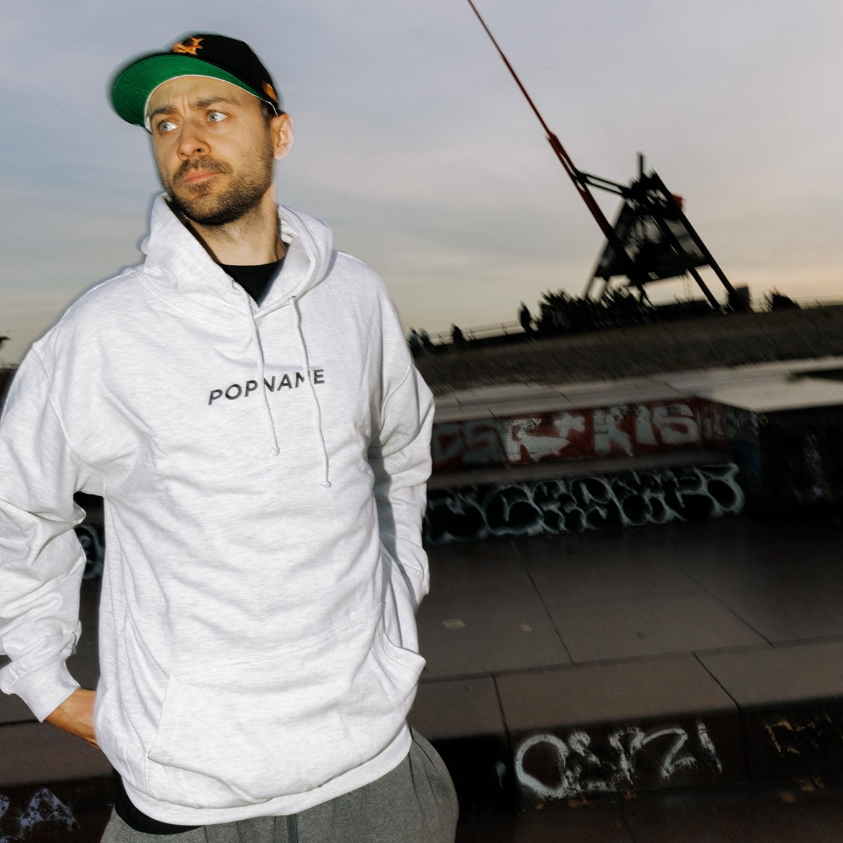 Mikina Popname se stahovací kapucí Basic Logo v žíhané šedé barvě Ash Heather. Na prsou je černý potisk loga POPNAME. Je vyrobena z velice pohodlné česané a vyztužené 75% bavlny a 25% polyesteru s gramáží 280 g/m2 a s dvojitým prošíváním lemů. Uvnitř je příjemný hřejivý fleece. Střih je unisexový s regular fitem.
