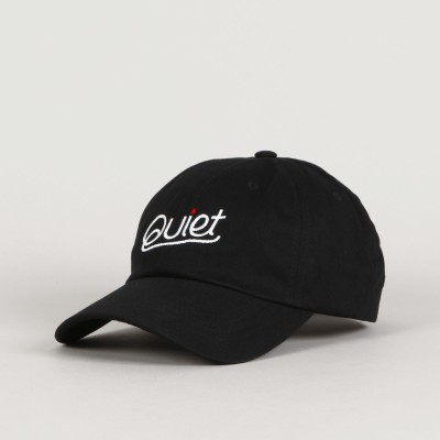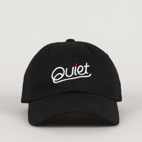 Kšiltovka losangelské značky The Quiet Life. Model s názvem Cursive Dad Cap v černé barvě. Šestipanelová konstrukce s větracím očkem v každém z panelů. Vzadu látkový pásek s kovovou sponou na úpravu velikosti. Na čele vyšitý nápis Quiet. Vyrobeno v USA.