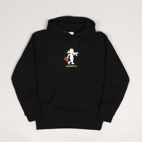 Mikina Sci-Fi Fantasy s názvem Tech Support Hoodie v černé barvě. Má zúžené žebrované rukávy a pas, kapucu se stahováním na tkaničku. Na břiše velká klokaní kapsa. Na prsou grafika s opravářem, pod grafikou kontrastní nápis Sci-Fi Fantasy a na zádech malý potisk značky. Vyrobeno z bavlny a polyesteru s vyšší gramáží.
