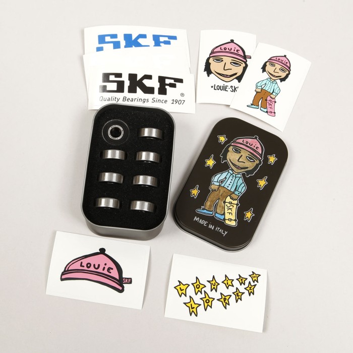 Ložiska SKF Bearing s názvem Louie Pro. Jde o promodel ridera Louie Lopeze. Kombinují rychlost, hladký chod a vysokou odolnost. Mají snímatelný gumový kryt na jedné straně pro snadné čištění. Jsou vyrobena v Itálii. Balení obsahuje 8 kusů ložisek, několik samolepek SKF a Louieho. Vše je zabalené do kovového boxu s malovanou grafikou Louieho. Tu vytvořil Stockholmský umělec a skater David Stenström.