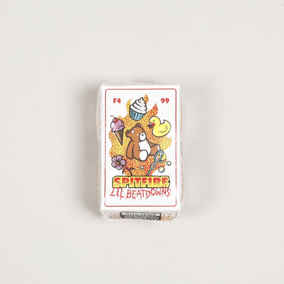 Kolečka z kolekce značky Spitfire Wheels. Model s názvem Formula Four 99 DU Lil Beatdowns Classic je nejvyšší řadou koleček od Spitfire. Kombinují vlastnosti pro různé druhy povrchů. Tvrdost 99 DURO má delší životnost, lepší ovladatelnost a zvyšují odraz. Průměr 52 mm, šířka 32 mm. Made in USA.