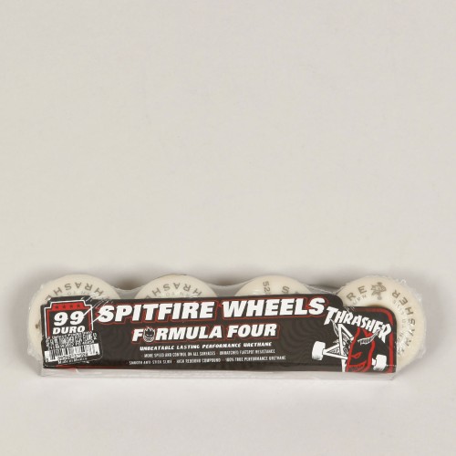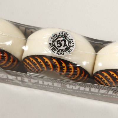 Kolečka z kolekce značky Spitfire Wheels. Model s názvem Formula Four 99 DU Classic Flame Classic je nejvyšší řadou koleček od Spitfire. Kombinují vlastnosti pro různé druhy povrchů. Tvrdost 99 DURO má delší životnost, lepší ovladatelnost a zvyšují odraz. Průměr 52 mm, šířka 32 mm. Made in USA.