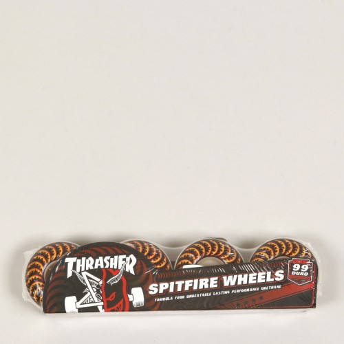 Potřebuješ nová kolečka na skate? Koukni na výběr značky Spitfire, určitě si mezi nimi vybereš. Třeba tuhle limitku z kolaborace Spitfire x Thrasher s grafikou po obou strannách kolečka.