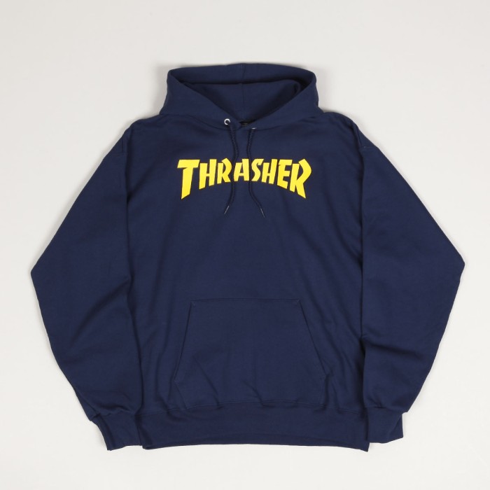 Mikina Thrasher Magazine s názvem Cover Logo Hoodie v tmavě modré barvě. Materiál 100% bavlna. Střih mikiny je "regular fit" se zúženými reglan rukávy. Elastické úplety na rukávech a spodním lemu mikiny. Stahovatelná kapuce a velká přední kapsa. Na prsou kontrastní grafika loga Thrasher z titulky časopisu.