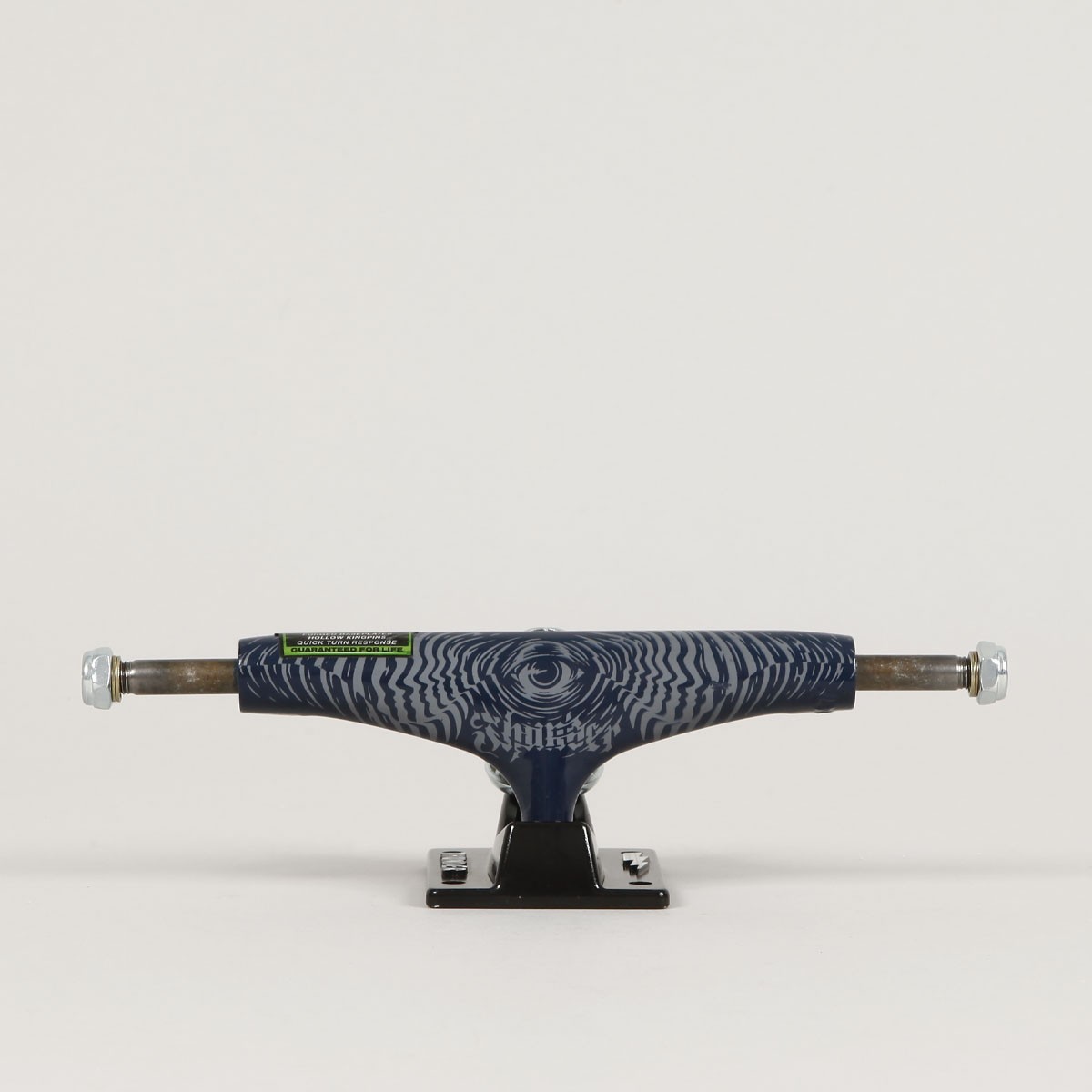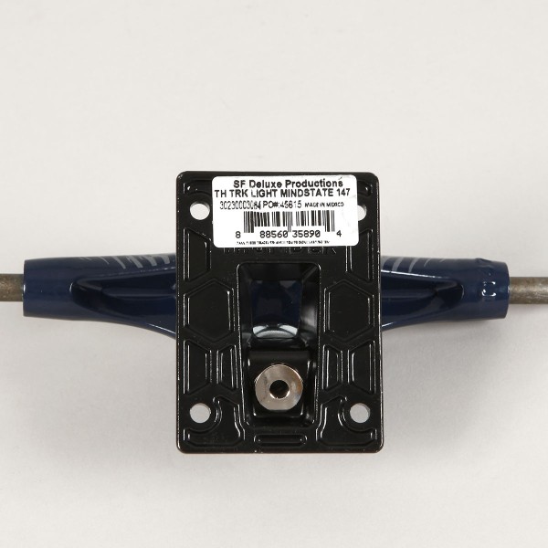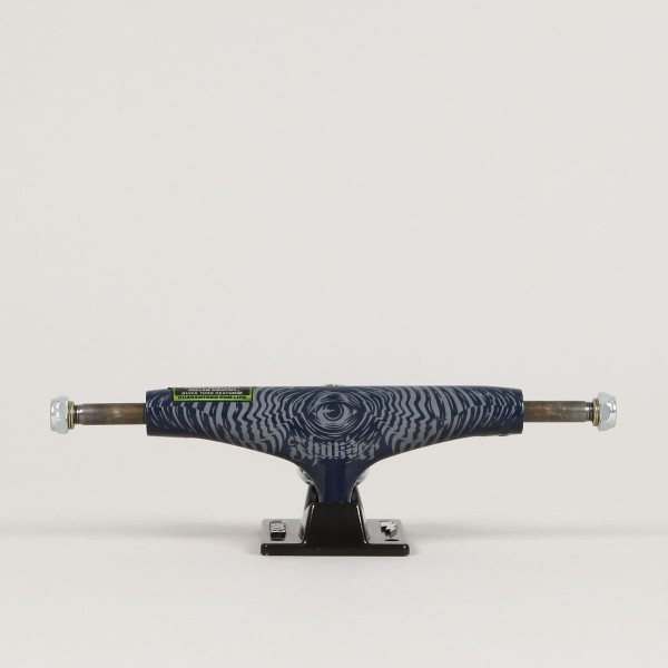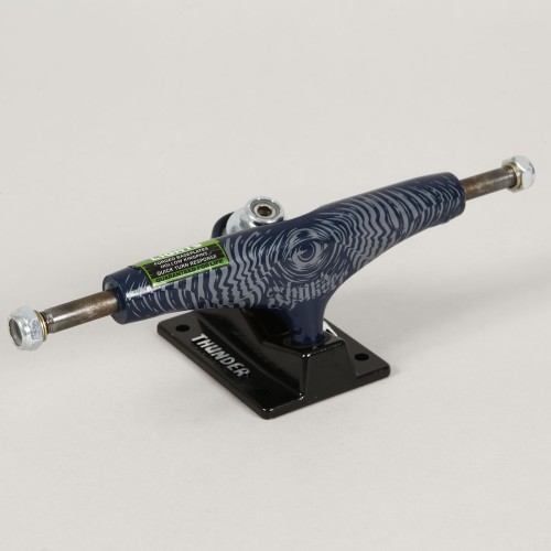 Treky od značky Thunder v modro černém provedení s nápisem Thunder a grafikou šedého oka. Model s názvem Mindstate Lights s odlehčeným kovaným baseplatem a dutým kingpinem. Velikost 147 se doporučuje pro desky 7.9 až 8.12 palců. Cena je za set 2 kusů treků.