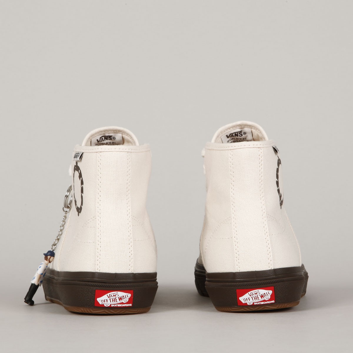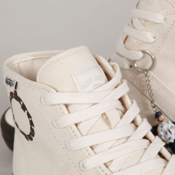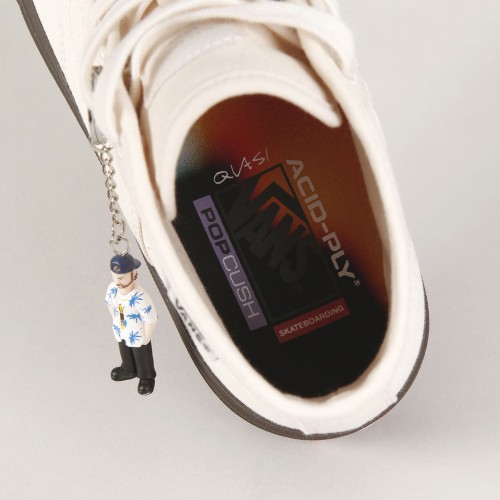Boty Vans ze speciální limitované kolaborace se skejtovou značkou Quasi. Značku založil Chad Bowers ve městě Dayton ve státě Ohio. Vyznačují se kreativní grafikou, která dbá na minimalismus a zachování jedinečného vkusu. Na tvorbě motivů se podílejí skaters z celého týmu. Mezi ridery najdeš jména jako Gilbert Crocket, Justin Henry a Dick Rizzo. Model Crockett High Decon má svršek ze zesíleného canvasu s odvětrávacími očky na vnitřní straně. Z boku prošívaná ikonická vlnka s kruhovým nápisem Quasi a šachovnicovou vlaječkou na horním lemu, tenký deconstructed lem patky a okolo kotníku, velmi pohodlná, anatomicky tvarovaná vnitřní stélka PopCush pro tlumení nárazů a odolná Duracap vrstva se zesílenou špičkou. Hnědá vulc podrážka Wafflecup s přepracovaným vaflovým vzorem. Na patce kontrastní logo Vans Skateboaridng. V balení jedny tkaničky navíc a přívěšek na klíče v podobě postavičky. Zabaleno do designové krabice s celoplošným barevným motivem.