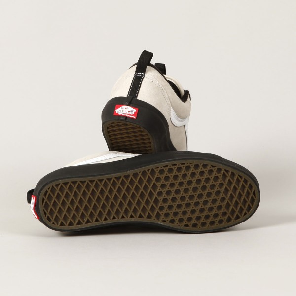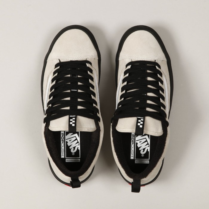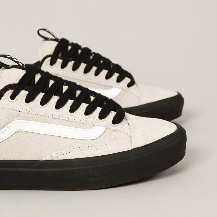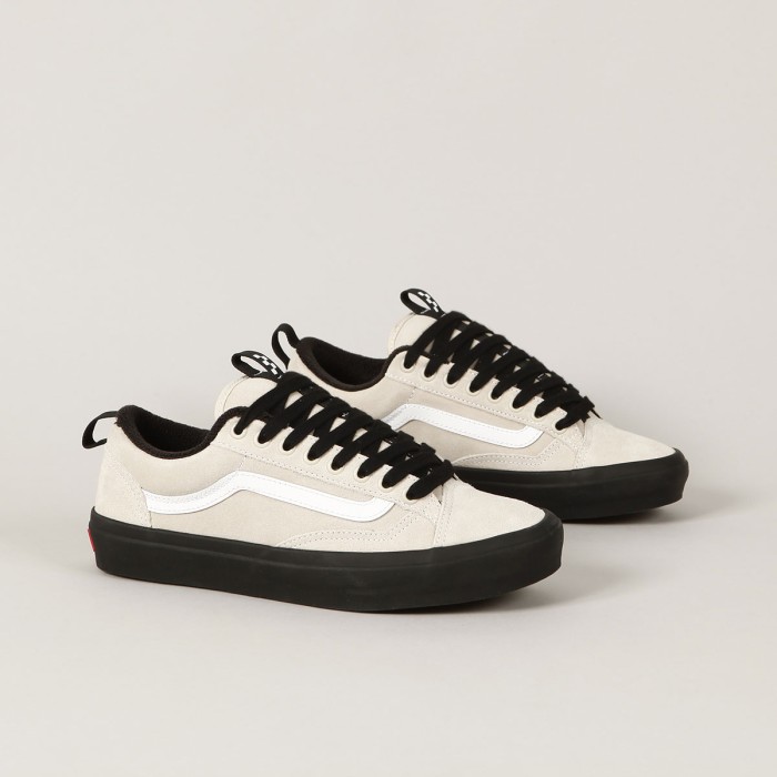 Boty Vans z řady Skate Classic, s názvem Skate Old Skool 36+. Svršek je vyroben ze semiše. Z boku je našitá bílá kožená vlnka a v oblasti ollie zóny je silnější semišová vrstva. Kovová očka, silný jazyk s elastickými klínky, polstrovaný lem paty a okolo kotníku. Uvnitř velmi pohodlná, anatomicky tvarovaná stélka PopCush na tlumení nárazů a zlepšení odrazu. Odolná Duracap vrstva se zesílenou špičkou. Vulc podrážka s větší lepivostí a klasickým vaflovým vzorem a logem Vans Skateboarding na patce. Poutka na jazyku a patě pro lepší nazouvání.