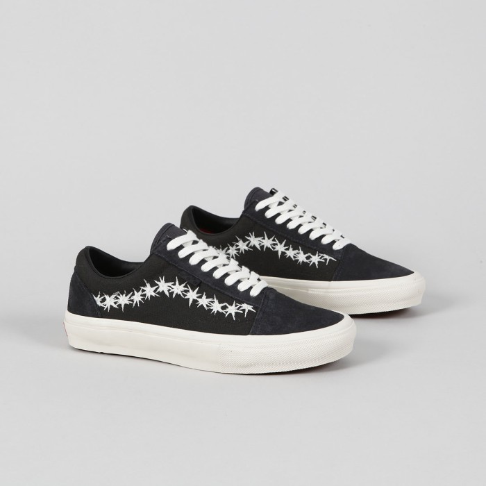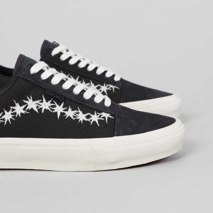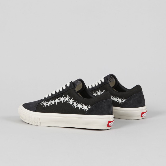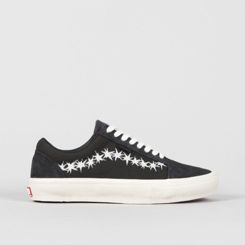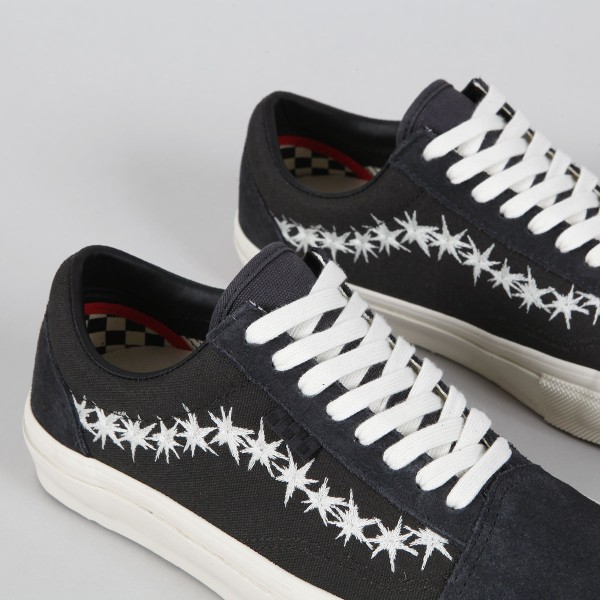 Boty Vans s názvem Skate Old Skool, z řady Skate Classic. Svršek z kombinace semiše a zesíleného canvasu. Z boku ikonická kontrastní vlnka vytvořená z hvězdiček s malou šachovnicovou vlaječkou, polstrovaný a vyztužený lem patky, velmi pohodlná, anatomicky tvarovaná vnitřní stélka PopCush pro tlumení nárazů a odolná Duracap vrstva se zesílenou špičkou. Vulc Sickstick podrážka s větší lepivostí a klasickým vaflovým vzorem a logem Vans Skateboarding na patce.