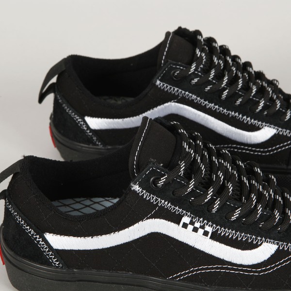 Boty Vans Skate Old Skool Doobie Net. Colorway a design navrhoval skater Victor "Doobie" Pellegrin. Svršek z kombinace semiše, zesíleného canvasu a síťoviny. Z boku vyšitá ikonická kontrastní vlnka s malou šachovnicovou vlaječkou, horní očka kovová, velmi pohodlná, anatomicky tvarovaná vnitřní stélka PopCush pro tlumení nárazů. Středový látkový díl je prošívaný a připomíná rybářskou síť. Jazyk má elastické klínky pro větší pohodlí a udržují jazyk na správném místě během nošení. Překrývá jej druhá vrstva z pružné síťoviny. Vulc Sickstick podrážka s větší lepivostí a klasickým vaflovým vzorem a logem Vans Skateboarding na patce. Na patce našitá poutka pro snazší nazouvání. Uvnitř vložka se signaturou Victor "Dobbie Pellegrin s rybářským motivem. Ve stejném duchu je zpracován i originální box. Grafiku má na svědomí známý Antihero umělec Todd Francis.