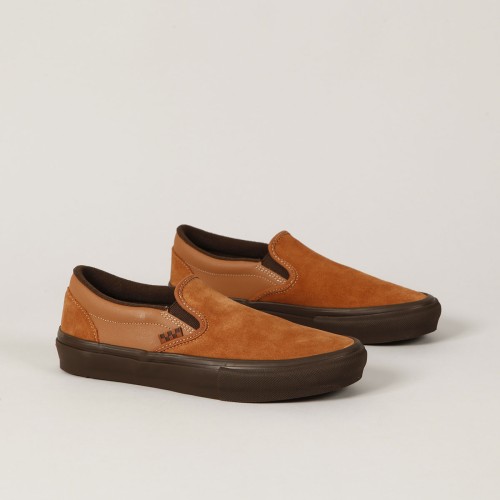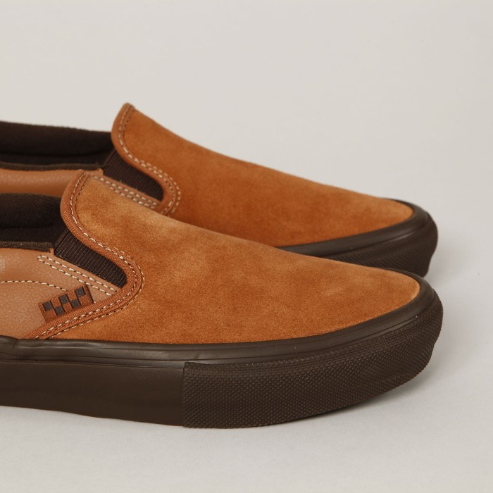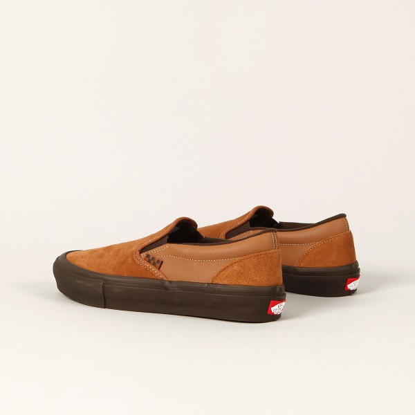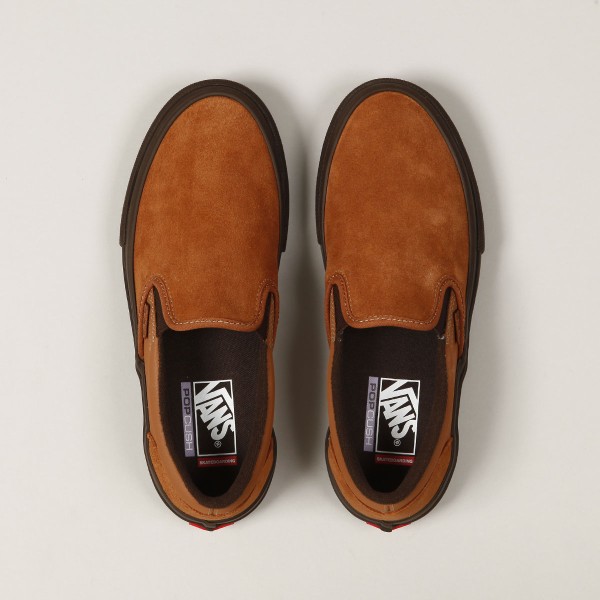 Boty Vans z řady Skate Classic a legendární model Slip-On se svrškem vyrobeným z kombinace semiše a syntetické kůže. Vylepšená, lepivější, vaflová vulc podrážka s technologií SickStick. Velmi pohodlná, anatomicky tvarovaná vnitřní stélka PopCush pro tlumení nárazů, odolná Duracap vrstva se zesílenou špičkou a polstrovaný lem patky pro větší pohodlí.