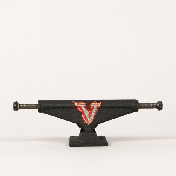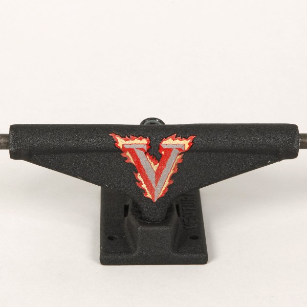 Trucky jsou lakovány práškovým lakem, který svou texturou připomíná zápalný uhlík. Na hangeru najdeš hořící logo Venture.
