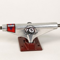 Trucky Venture s názvem V-Hollow Bryan O'dwyer v klasické stříbrné barvě s červenými doplňky. Mají kovaný baseplate, odlehčené - duté osy a kingpin. Na hangeru decentní logo Brian O'dwyer. Velikost 5.2 ve vysokém Hi provedení, ideální pro desky 7.9" - 8.1" palce.