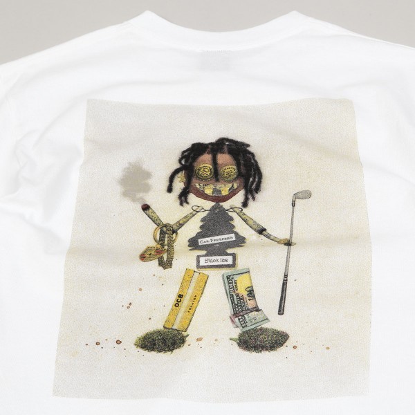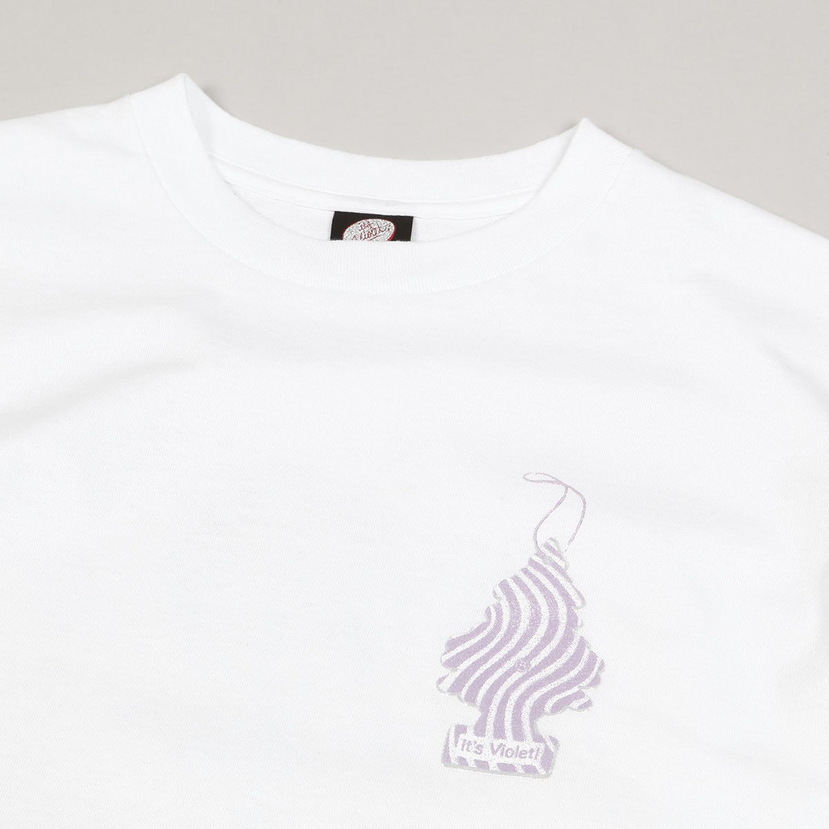 Triko Violet Skateboards s názvem Kader Sylla Trash Doll Tee v bílé barvě. Pohodlný střih s delšími rukávy a kulatým, žebrovaným límečkem. Na levé straně prsou malý stromeček do auta s nápisem It's Violet a na zádech potisk koláže s postavičkou Kadera. Grafiku vytvořil Aurel Schmidt. Tištěno v USA. Vyrobeno ze 100% bavlny.