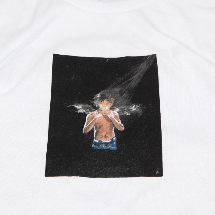 Triko Violet Skateboards s názvem Kader Sylla In The Essence Tee v bílé barvě. Pohodlný střih s delšími rukávy a kulatým, žebrovaným límečkem. Na prsou potisk malovaného obrázku Kadera. Design vytvořil Josh Loney. Tištěno v USA. Vyrobeno ze 100% bavlny.