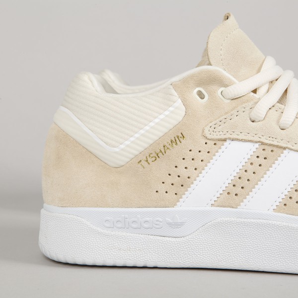 Adidas Skateboarding shoes , pro-model shoes of rider Tyshawn Jones, designed for skateboarding by Tyshawn himself and Scott Johnston. The silhouette of the shoe is inspired by basketball sneakers. Upper made of brushed suede, reinforced Adituff toe and breathable tongue. Outsole with EVA technology, Adiprene cushioning in the heel area for greater comfort and shock absorption. Perforated toe, tongue and outer and inner parts of the shoes. In addition, they have an improved collar of memory foam around the ankle. On the side, three iconic Adidas stripes and gold Tyshawn signature.