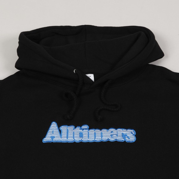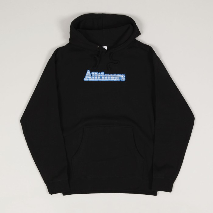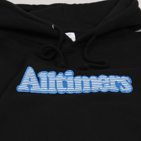 Alltimers sweatshirt called Lined Broadway Embroidered Hoodie in black, hood adjustable with laces and large front pocket. Alltimers colorful inscription embroidered on the chest. Material 70% cotton and 30% polyester.