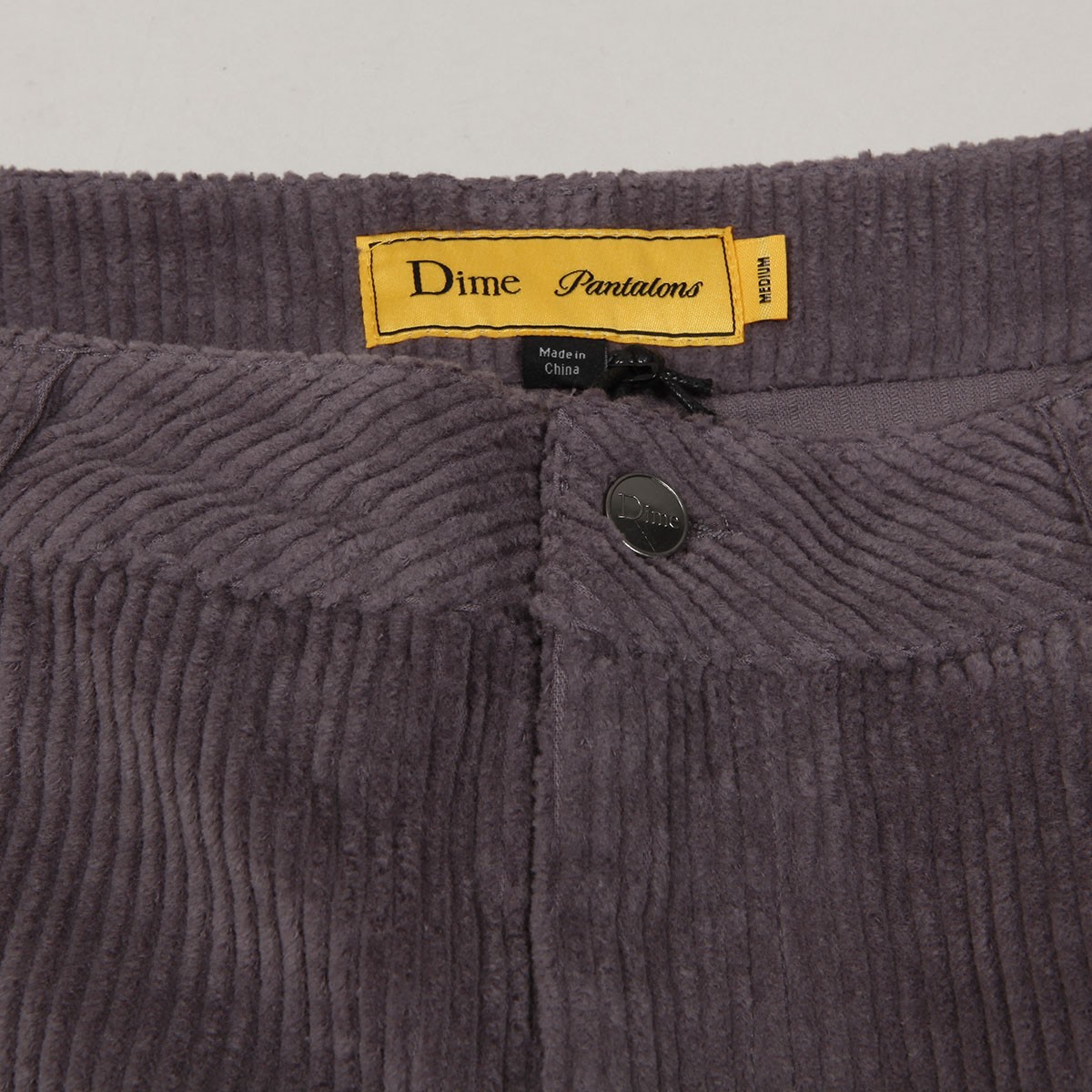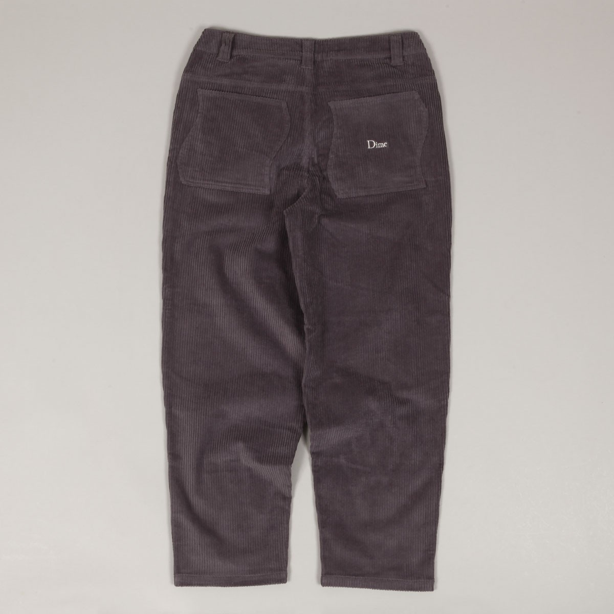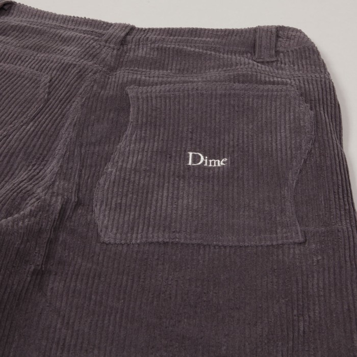 Dime corduroy pants called Baggy Corduroy Pants in gray-blue color. Small Dime logo embroidered on the back right pocket. Button and YKK zipper closure. Loose wide cut - Baggy fit. Material 100% cotton.