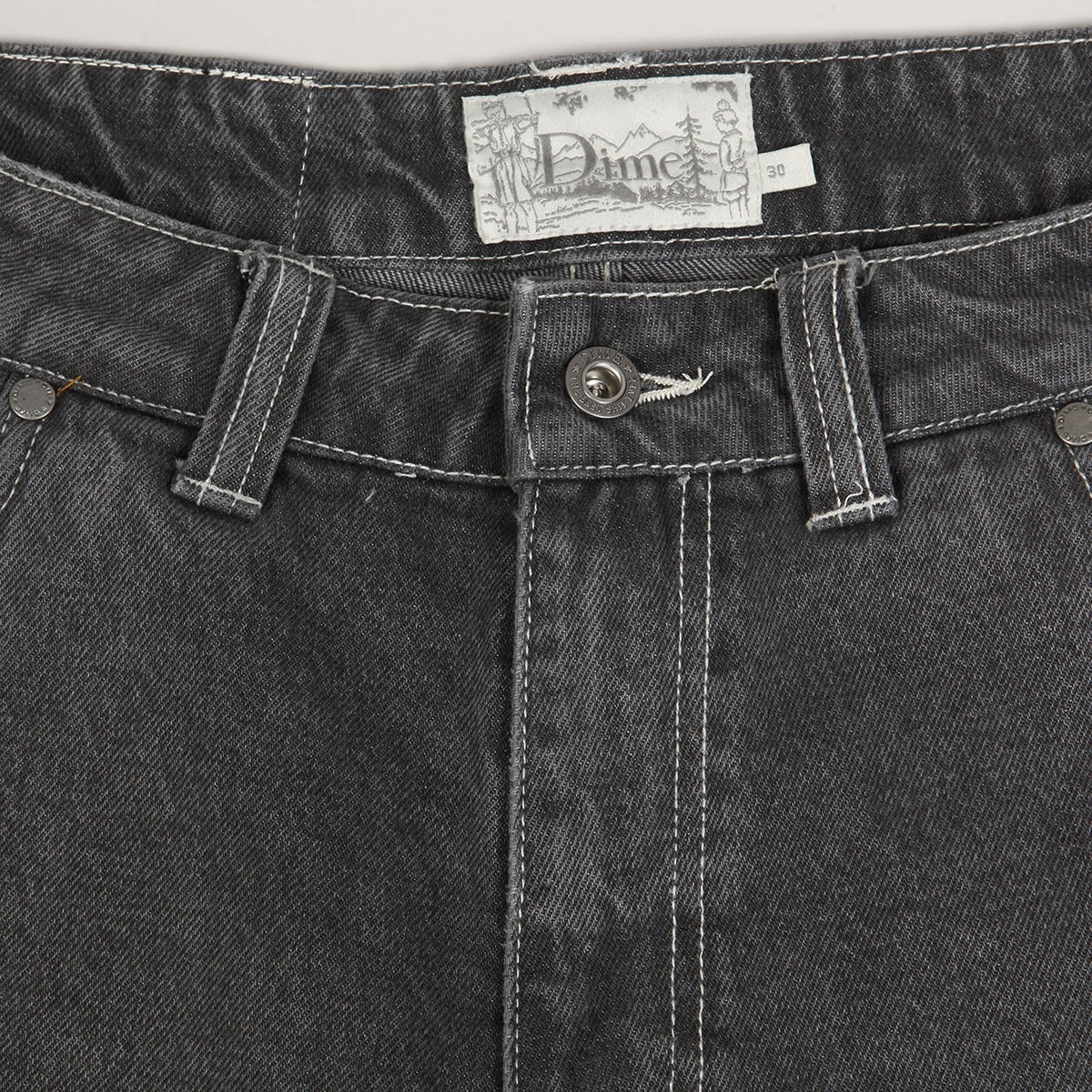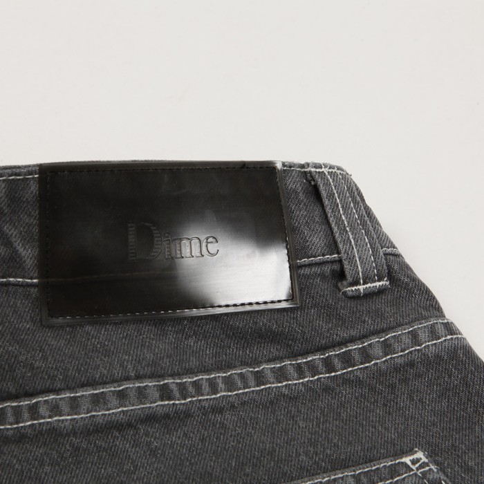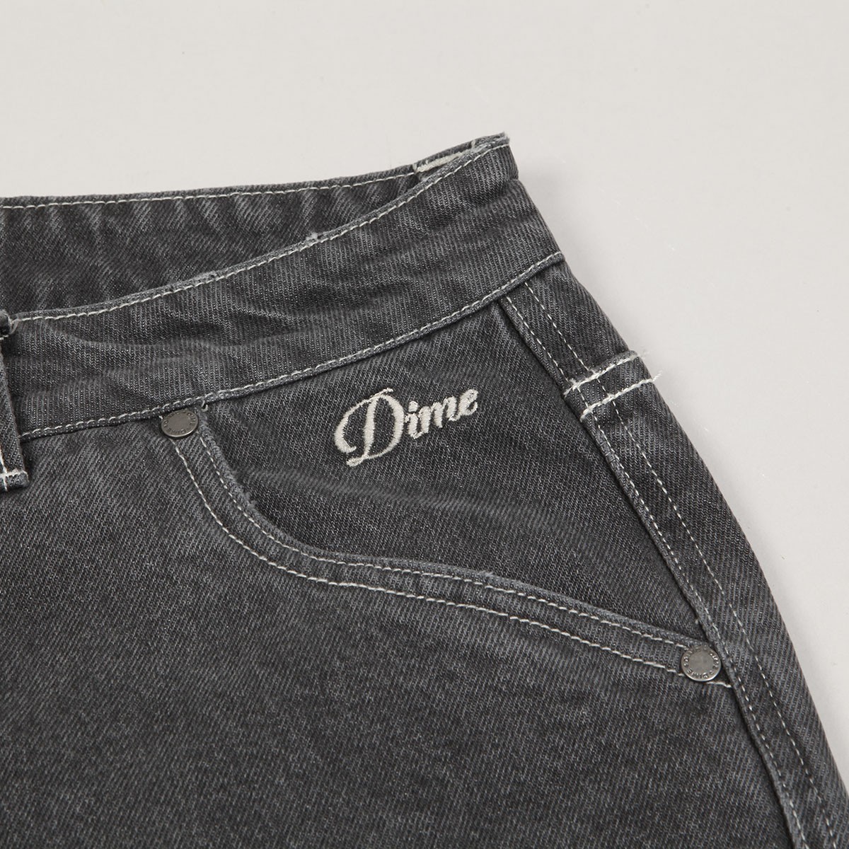 Dime shorts called Classic Denim Shorts in faded black. Subtle Dime logo embroidered on the left front pocket. Hammer loop on the left leg and a small pocket for small items on the right. Embroidered Dime label on the waist. Button and YKK zipper closure. Classic cut - Regular fit. Material 100% cotton.