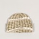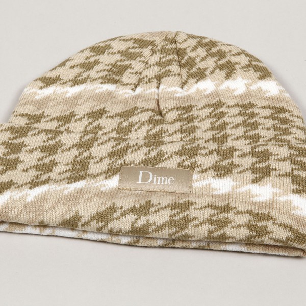 Dime Wavetooth Cuff Beanie with a folded hem in a light flesh color with a knitted wave motif. There is a contrasting patch with the Dime inscription on the forehead. Material 100% acrylic. Universal size, fits most.