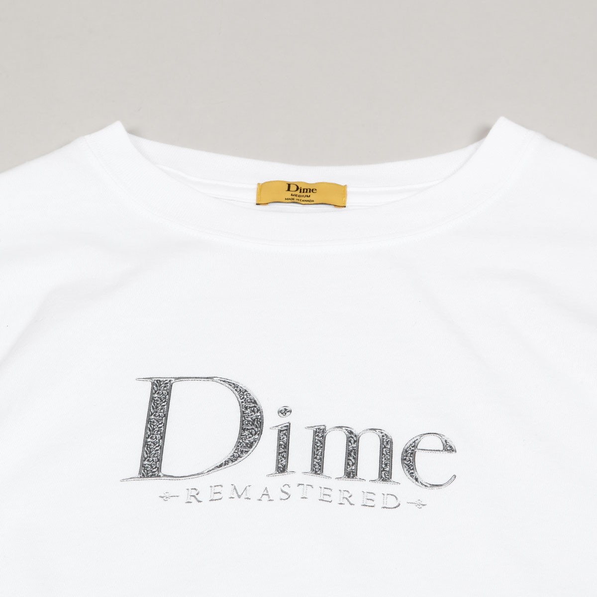Dime T-shirt called Classic Remastered Tee in white. Large Dime Remastered inscription printed on the chest. Material 100% cotton.