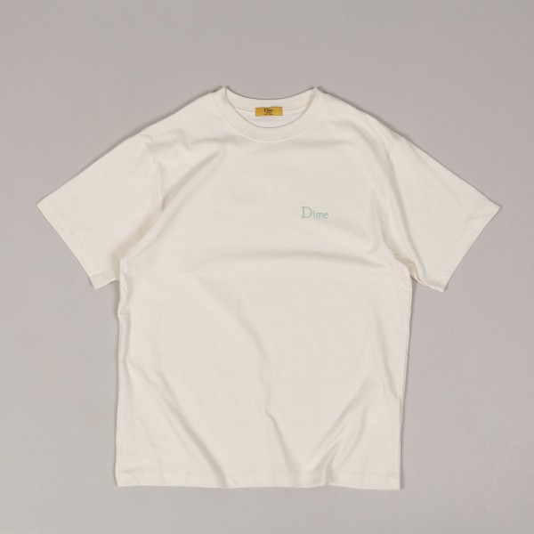 Dime Classic Small Logo Tee in rice white. Small contrasting Dime logo embroidered on the left chest. Material 100% cotton.