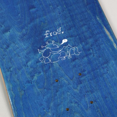 Frog Skateboards skateboard deck. Model called Extra Help Deck, cartoon graphics of the Frog Skateboards image and inscription. Size 8.25 inches. The top colored side of the deck may differ from the photo. Free grip with each deck.