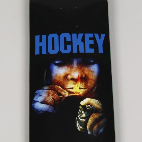 Skateboard deck from Jason Dilla and AVE - Hockey Skateboards. Pro model of rider Donovon Piscopo called Instructions Deck, graphic of a human figure with a match and the inscription Hockey. Size 8.38 and 8.5 inches. The top colored side of the board may differ from the photo. Free grip with each board.