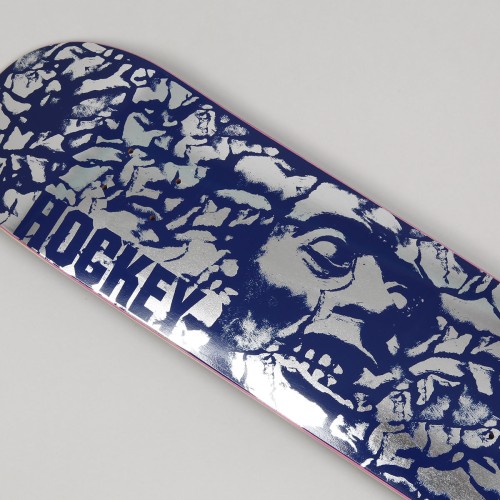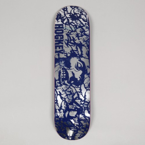 Skateboard deck from Jason Dilla and AVE - Hockey Skateboards. Pro model of rider John Fitzgerald called Stone Deck, graphic of a stone face and the inscription Hockey. Covered with shiny silver foil. Size 8.38 inches. The top colored side of the board may differ from the photo. Free grip with each board.