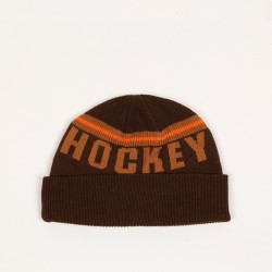Friendly Beanie Brown from Hockey Skateboards , a brand created by skateboarding legends Jason Dill and Anthony van Engelen. Knitted Hockey lettering around the perimeter of the cap. Medium fit with a folded hem. Made of 100% acrylic.