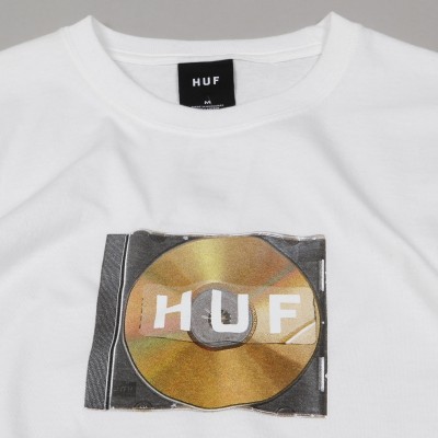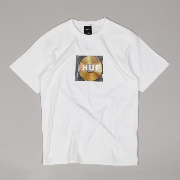 HUF T-shirt called Mix Box Logo Tee in white . On the chest there is a print of the HUF Box Logo in the form of a CD . On the lower hem there is a small HUF logo patch. Material 100% cotton.