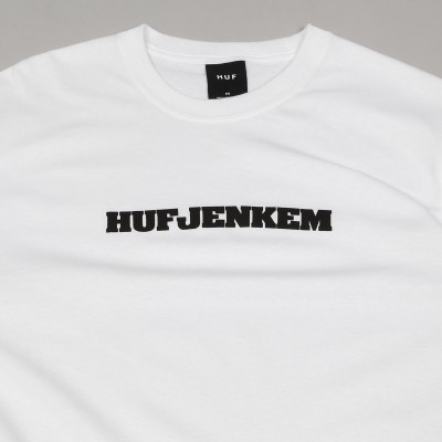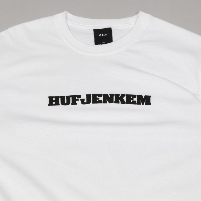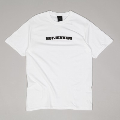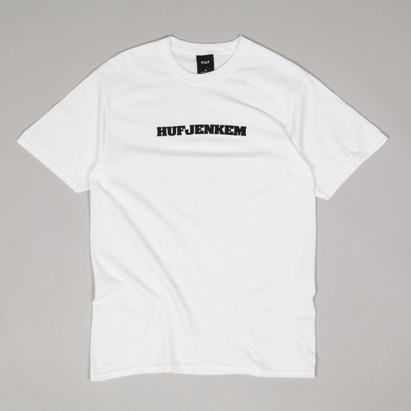 HUF T-shirt from a special collaboration with Jenkem magazine, model called Classic Tee in white . On the chest there is a print of the HUF x Jenkem inscription in a contrasting color . On the lower hem there is a small logo patch. Material 100% cotton.