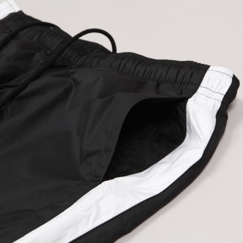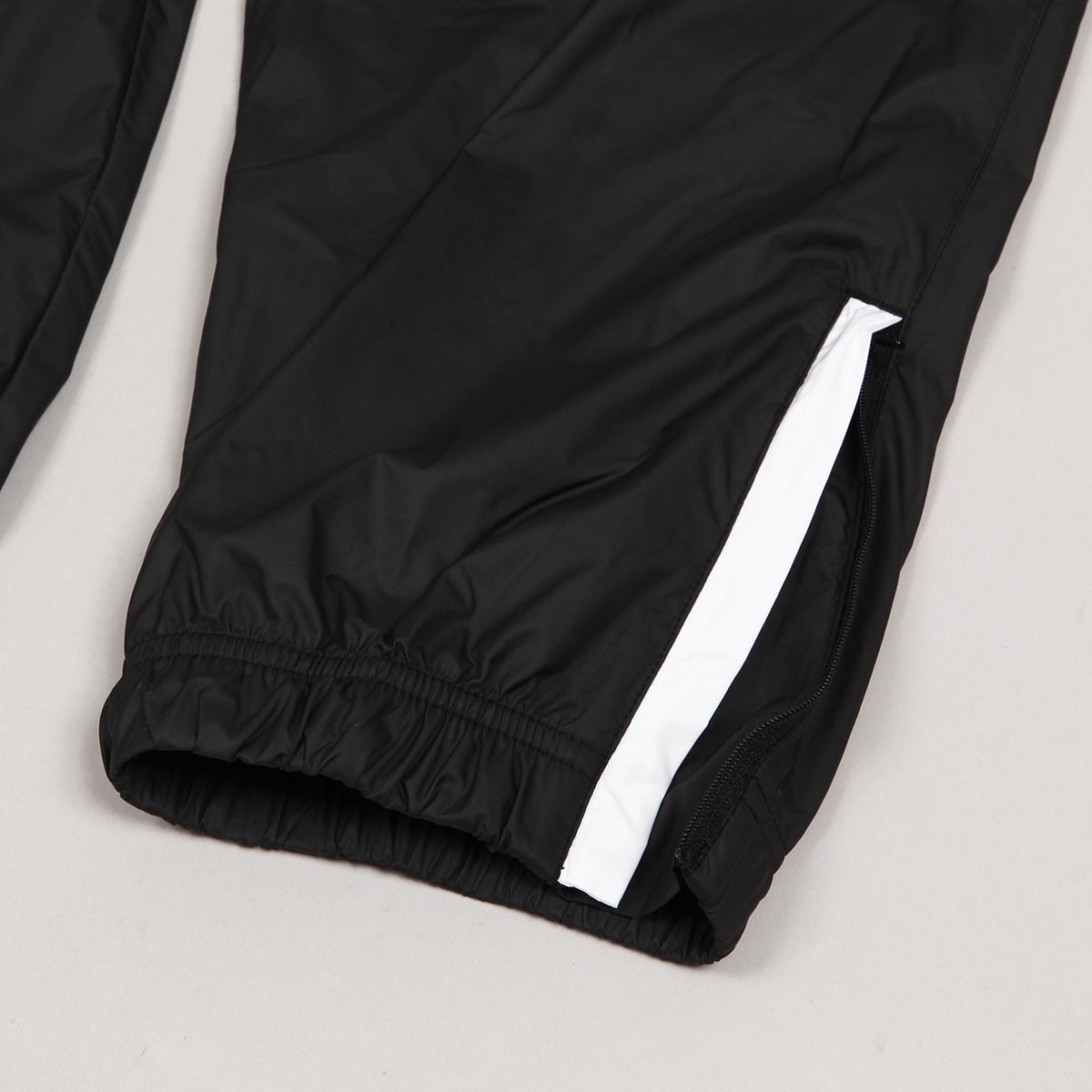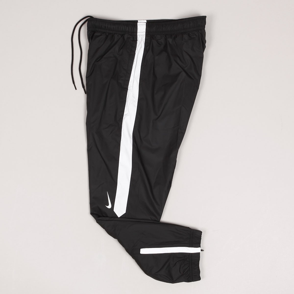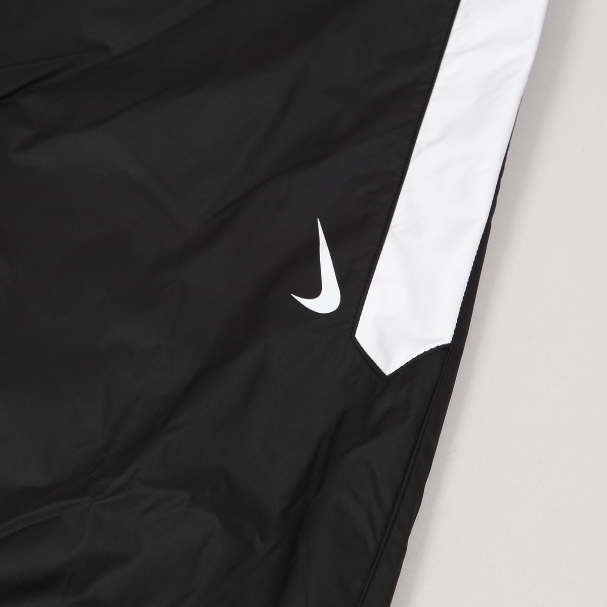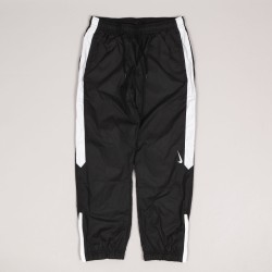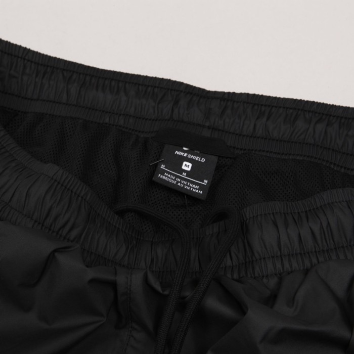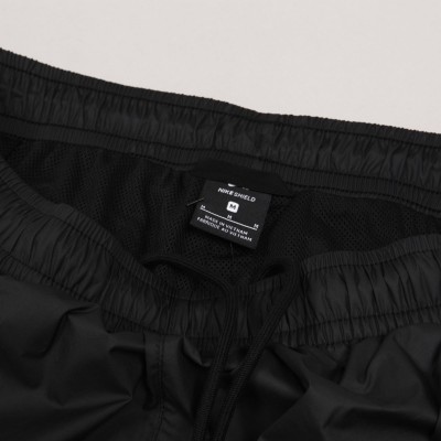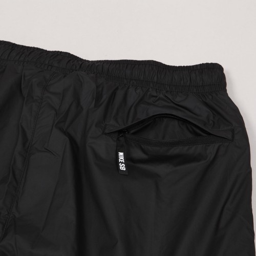 Nike SB Shield Pants made of stretch fabric that allows natural movement on the board even when worn casually. Drawstring waist, side pockets for small items and a zippered back pocket. Tapered elastic legs at the ends to prevent riding up. Contrasting Nike swoosh on the left leg. Wind and water resistant material, made of 100% polyester.