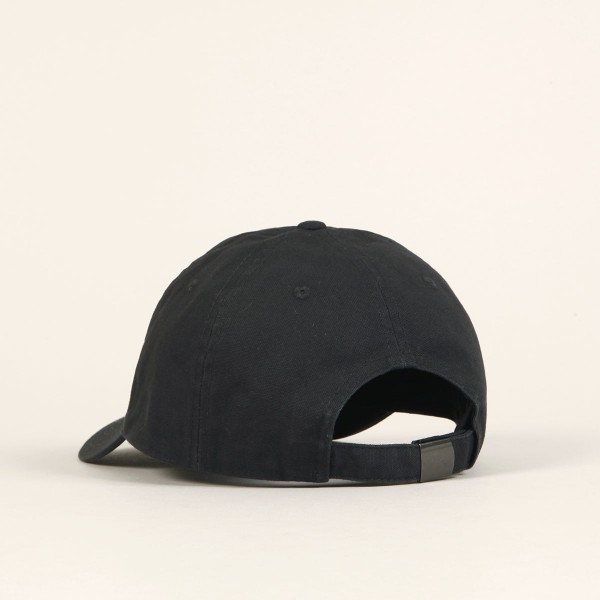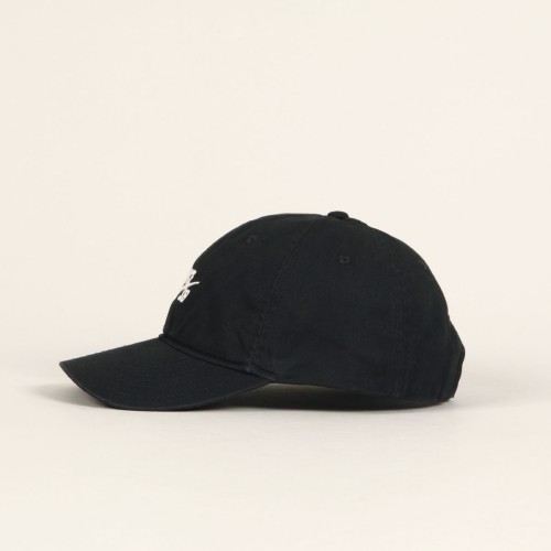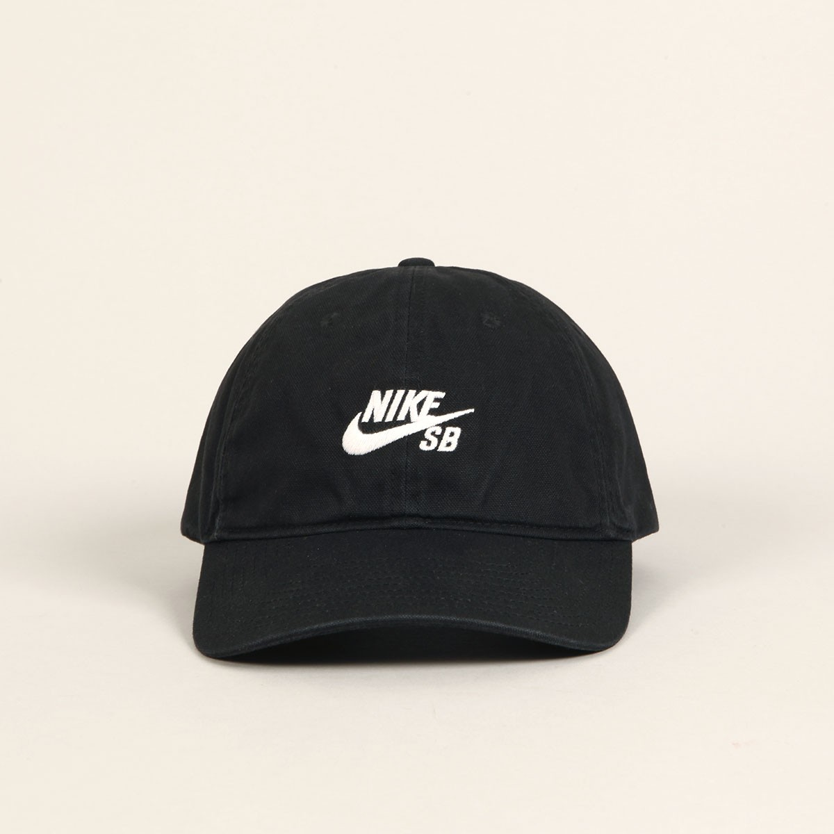 Black Nike SB cap called Club Cap. Contrasting Nike SB logo on the forehead. 6-panel cut with medium depth and slightly curved peak. Each panel has a ventilation eyelet. There is a fabric strap with a metal buckle at the back for size adjustment. Made of pleasant, soft cotton twill. Material 100% cotton.