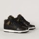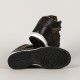 The legendary Nike SB Dunk High Pro OG Black Metallic Gold aka "Pawnshop" shoe model. They are from a special limited collaboration with the skate shop Pawnshop Skate Co. . The shop is located in Covina, California and was founded by Anthony Piscopo, father of Nike SB rider Donna Piscopo, in 2010. The colorway is inspired by the black and gold logo. The ankle version has an upper made of shiny, smooth leather with a perforated toe and metal eyelets. The lightweight cupsole sole also has a Zoom Air cushion for shock absorption. Breathable tongue and padded ankle collar for greater comfort, classic swoosh on the side. The Nike SB x Pawnshop logo on the tongue and insole and gold wings on the side of the shoes. Extra laces included.