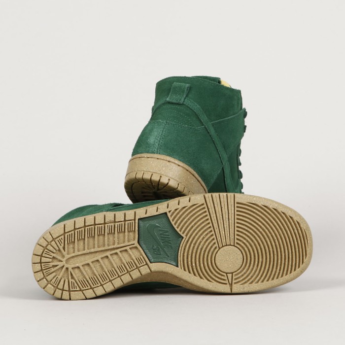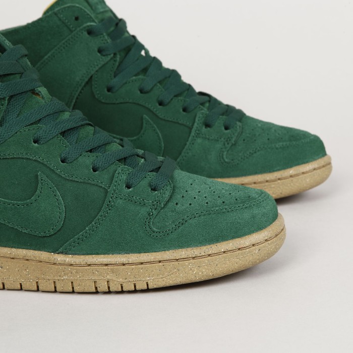 Ikonický model bot Nike SB Dunk High Pro Decon v barevném provedení Gorge Green.  Deconstructed řada vynechává nedůležité věci, zaměřuje se pouze na nejlepší materiály, jednoduchost a lehkost. Od prvního nazutí působí vyšlápnutým dojmem. Kotníková verze má svršek vyrobený z broušeného semiše s perforovanou špičkou, odlehčená cupsole podrážka z recyklátu má navíc Zoom Air polštář na tlumení nárazů. Klínek na jazyku zajišťuje dokonale padnoucí střih, který je zárukou vynikajícího kontaktu s prknem a jeho ovládání. Odhalený, lehčí jazyk a polstrovaný lem kotníku pro větší pohodlí, z boku klasický swoosh. Na jazyku semišová nášivka s vyraženým logem Nike SB.