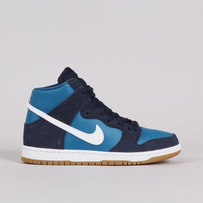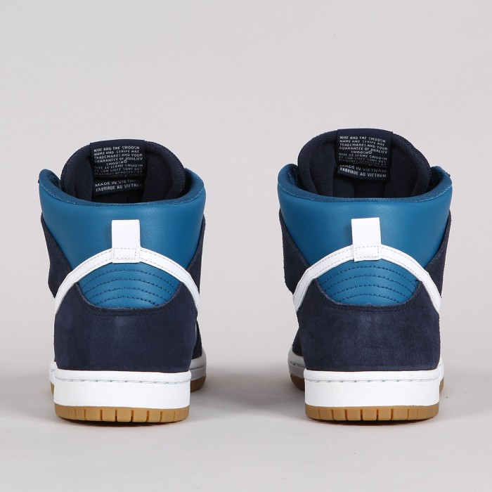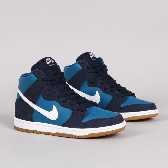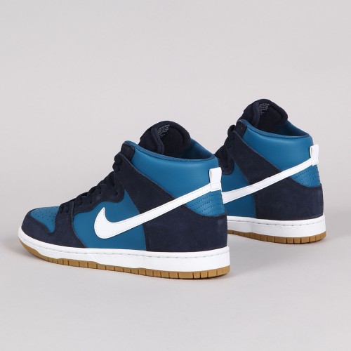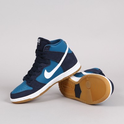 Iconic Dunk High Pro model in blue from Nike SB . The upper is made of leather, the lightweight cupsole has an additional Zoom Air cushion for shock absorption . Lightweight and thinner tongue and ankle collar, padded for greater comfort. One extra white laces in the package.