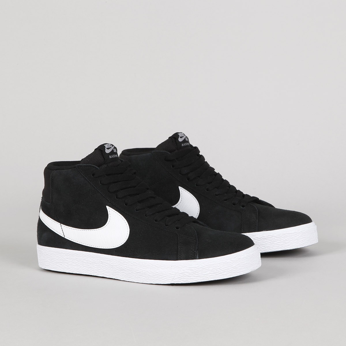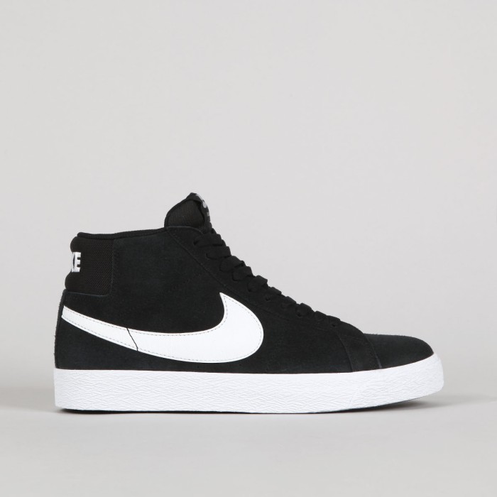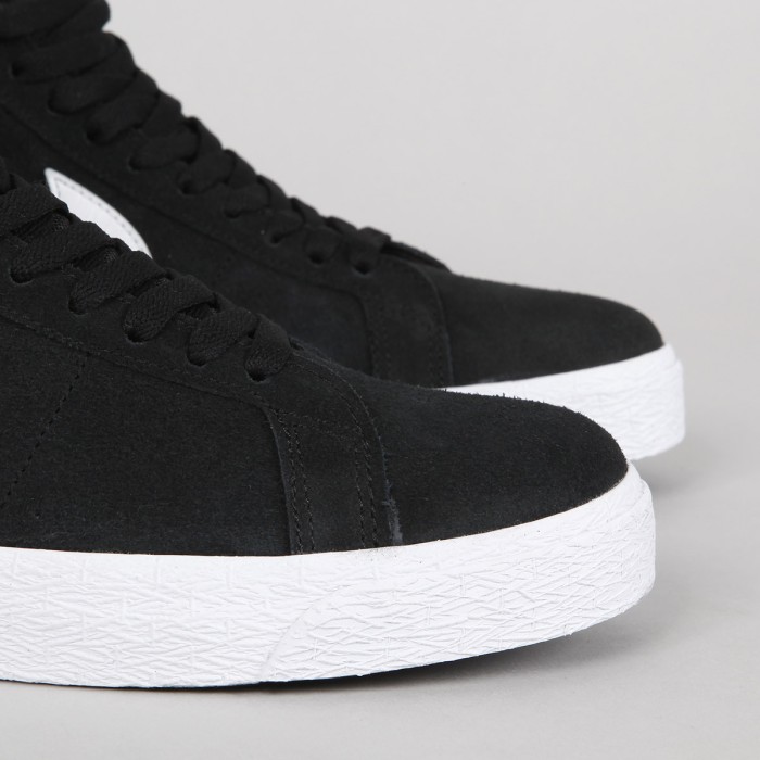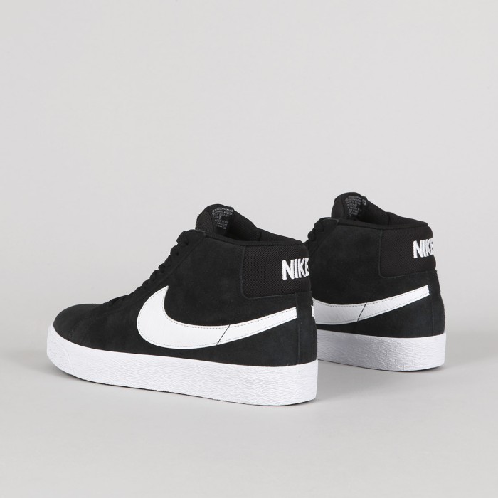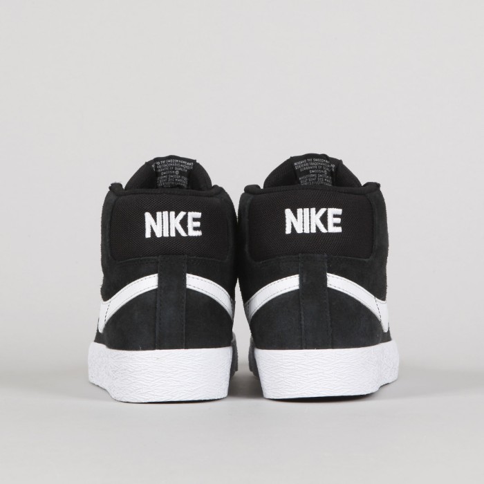 Nike SB Blazer Mid ankle boots in Black/White-White-White. The legendary Blazer model from Nike has been reworked for the Skateboarding section. This model is made of suede, has a volcanic sole, a swoosh sewn on the side and a Nike SB patch on the tongue. Embroidered Nike lettering on the heel. The insole is also equipped with Zoom Air technology under the heel and provides protection during impact and cushioning of hard impacts. Thanks to the volcanic sole, the herringbone pattern perfectly adheres to various types of surfaces and guarantees great contact with the board. These shoes are primarily intended for skateboarding, but they can also be used for other sports and everyday wear.