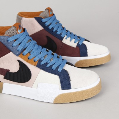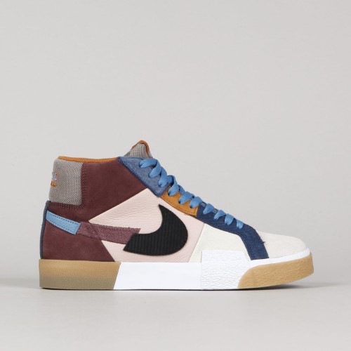 The Nike SB Blazer Mid Premium ankle boots in the Dark Wine/Black-Pink Oxford-Cashmere colorway are inspired by community art spaces in Barcelona. The legendary Blazer model from Nike has been reworked for the Skateboarding section. This model is made of a combination of suede, leather and canvas, has a volcanic sole, a scattered swoosh on the side and a Nike SB patch on the tongue. Embroidered Nike lettering on the heel. Pulled rubber in the ollie zone for longer durability. The insole is also equipped with Zoom Air technology under the heel and provides protection during impact and cushioning of hard impacts. Thanks to the volcanic sole with a herringbone pattern, it adheres perfectly to various types of surfaces and guarantees great contact with the board. These shoes are primarily intended for skateboarding, but they can also be used for other sports and everyday wear.
