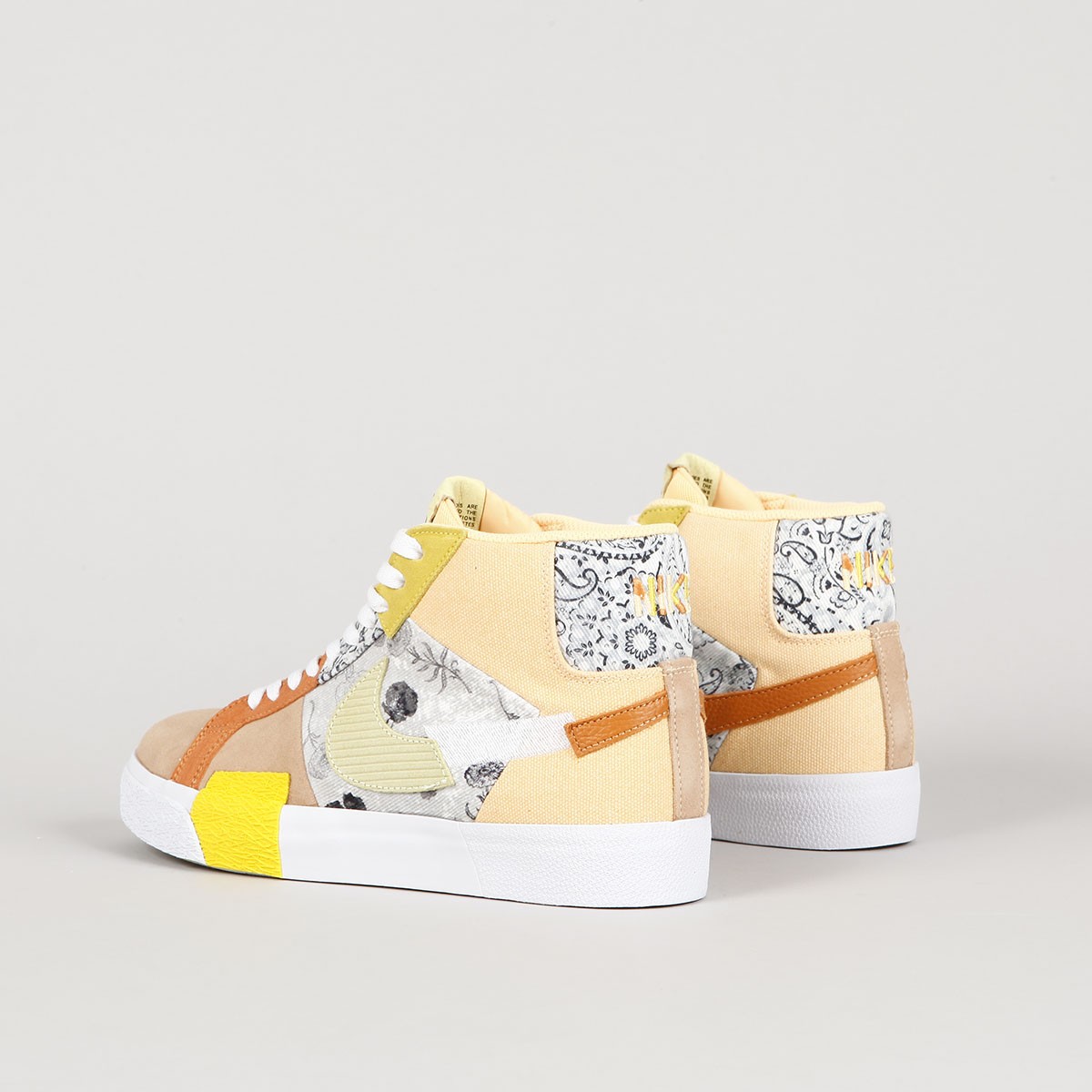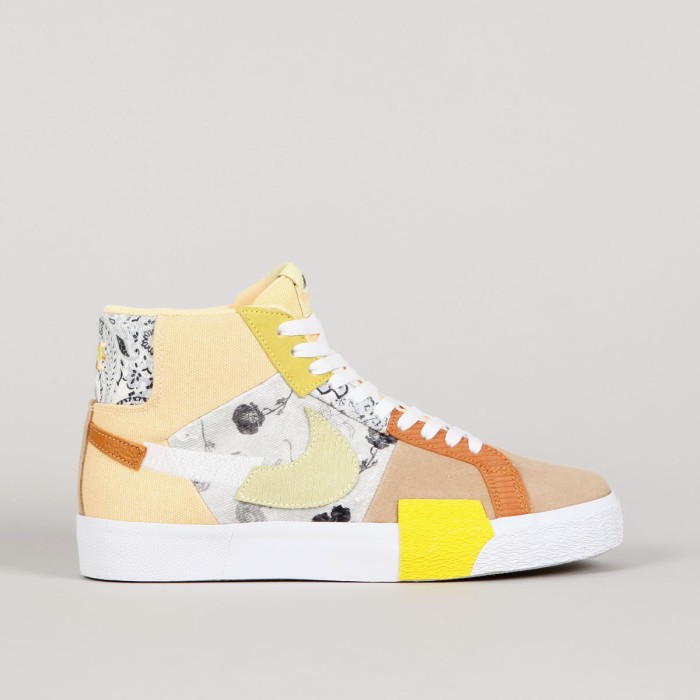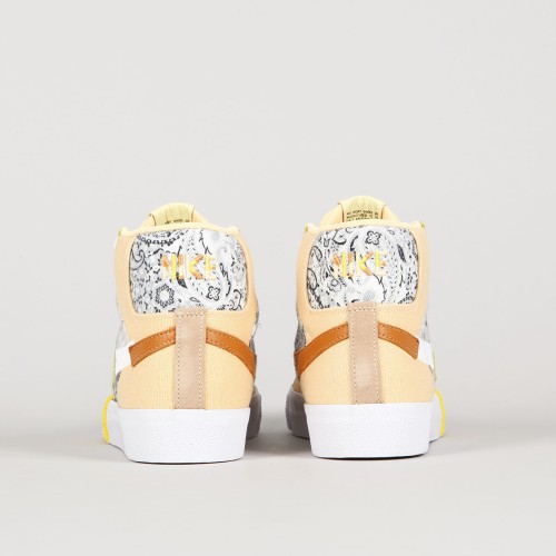 The Nike SB Blazer Mid Premium ankle boots in Melon Tint Citron are inspired by faded cashmere fabrics with floral patterns - Faded Paisley. The legendary Blazer model from Nike has been reworked for the Skateboarding section. This model is made of a combination of suede, leather and canvas, has a vulcan sole, a scattered swoosh on the side and a Nike SB patch on the tongue. Embroidered Nike lettering on the heel. Pulled rubber in the ollie zone for longer durability. The insole is also equipped with Zoom Air technology under the heel and provides protection during impact and cushioning of hard impacts. Thanks to the vulcan sole with a herringbone pattern, it adheres perfectly to various types of surfaces and guarantees great contact with the board. These shoes are primarily intended for skateboarding, but they can also be used for other sports and everyday wear.