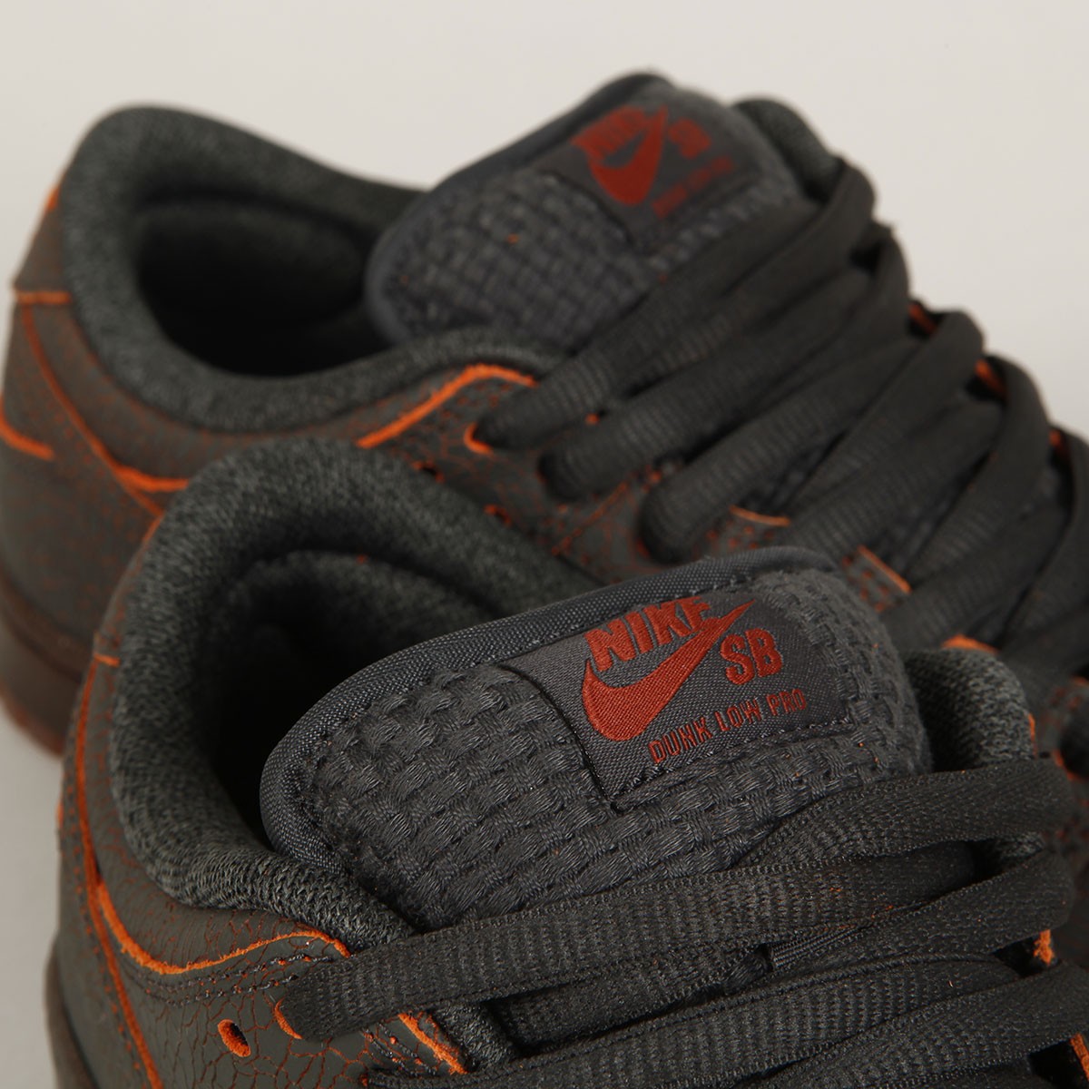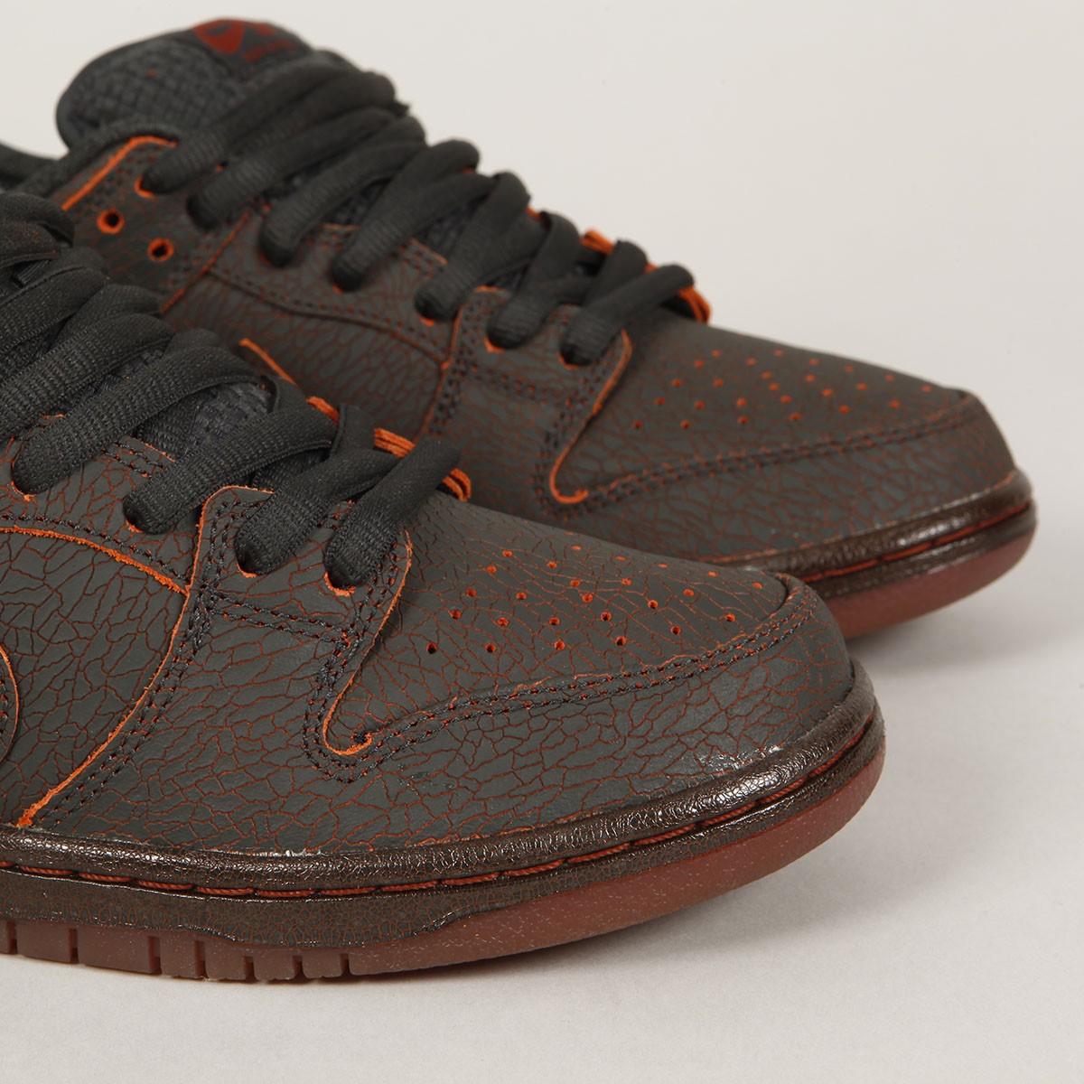 The Nike SB Dunk Low Pro Premium celebrates an ancient tradition that originated in the Austrian Alps and from there gradually spread throughout Austria and then to neighboring countries. The figure of Krampus, the devil, punishes naughty children, while St. Nicholas rewards the obedient. The Krampus Dunk model is made of cracked leather, through which the basic orange color slightly shines through. This combination symbolizes hot embers and fire. The charred look gradually transitions to the edge of the sole. A great detail is the labels on the inside of the tongue, with a patch with the inscription "Not surprised". The graphics on the inner sole also refer to hot coals and a print of the devil. Another tiny detail is hidden on the underside of the Zoom Air cushioning and cushioning, one has a picture of coal and the other a leaf of sins. On the heel you will find an embroidered Nike inscription. In addition, the package includes spare laces that will match the sole beautifully. And two gift, paper, tags from St. Nicholas.