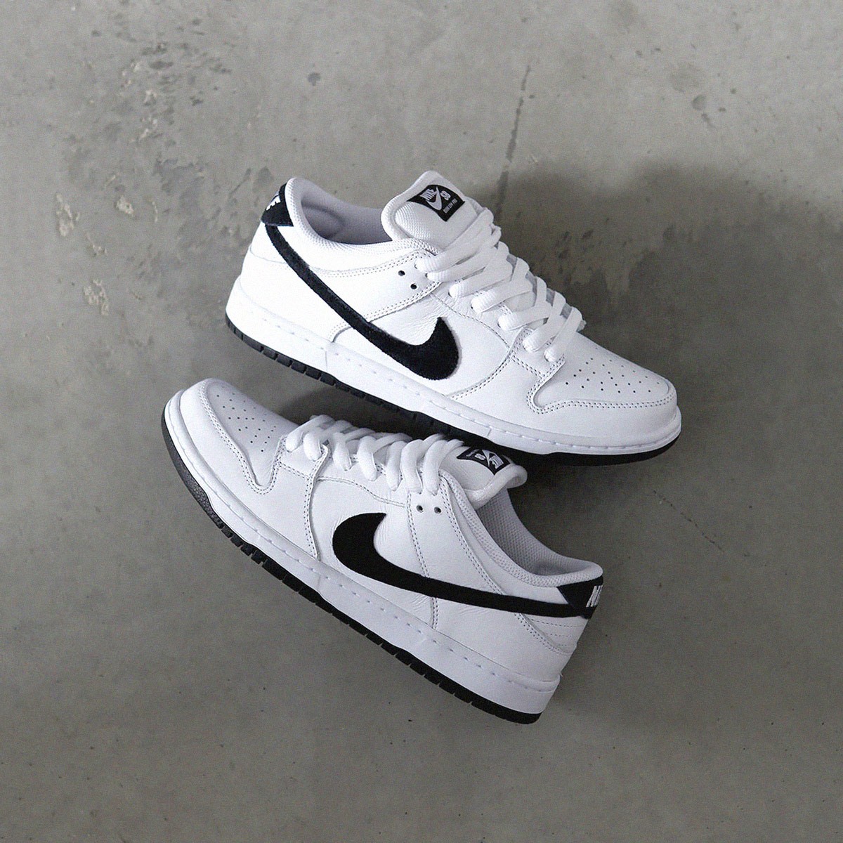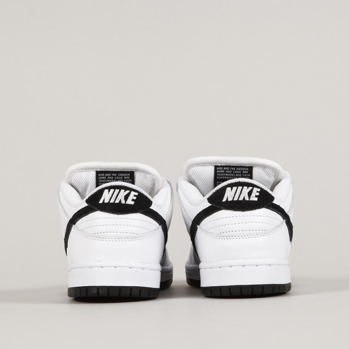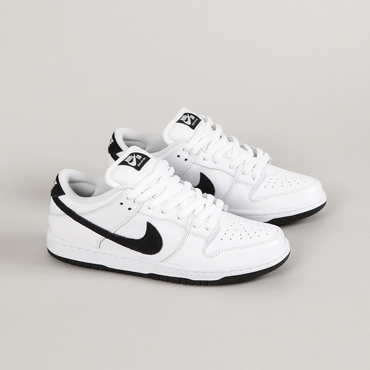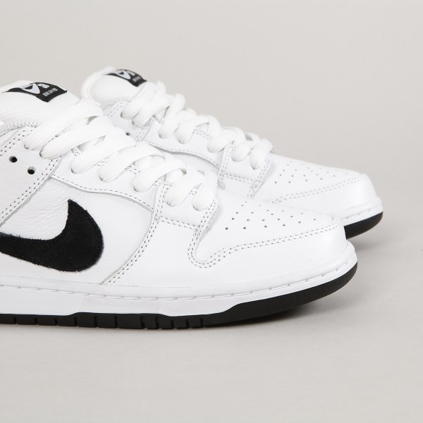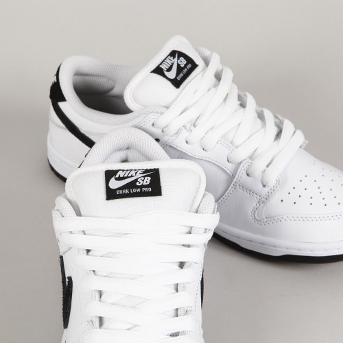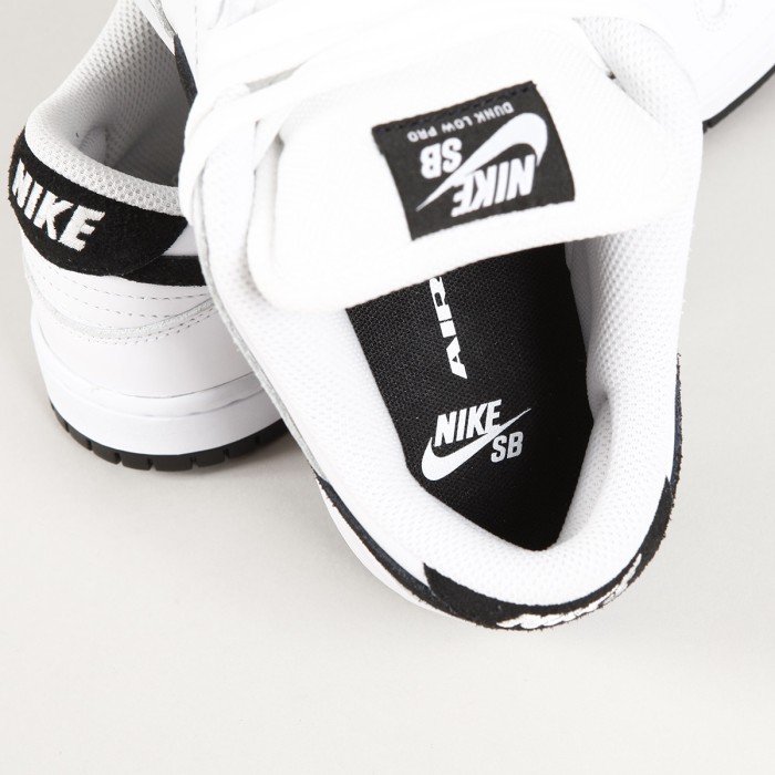Redesign of the Nike SB Dunk Low Pro shoe model in the White Black White Black colorway. The low version has an upper made of smooth leather with a perforated toe and a black suede swoosh. The lightweight cupsole sole also has a Zoom Air cushion for shock absorption and this time it has a Black/White colorway. A wedge on the tongue ensures a perfectly fitting cut, which guarantees excellent contact with the board and its control. Thick textile tongue with the Nike SB logo and a padded ankle collar for added comfort.