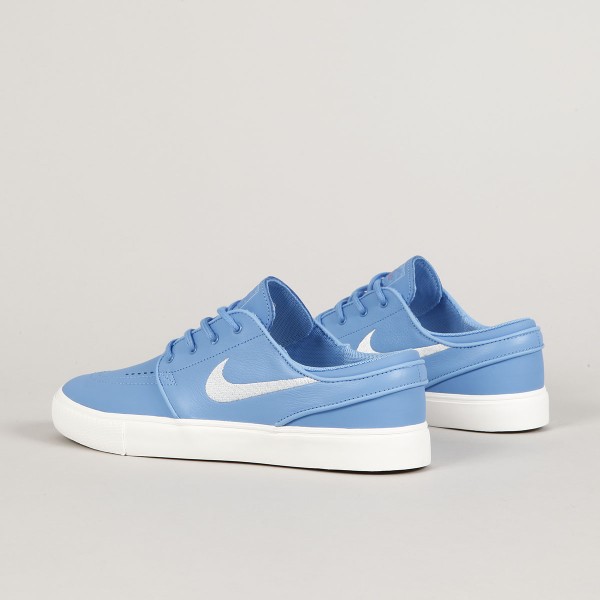 The Nike SB Original Plus Janoski with round laces is back in a limited Quickstrike version. Promodel Stefan Janoski OG Plus in University Blue / Sail colorway. Part of the limited Orange Label Pack collection, which also includes the Dunk Low and Vertebrae. Low leather design, ventilation eyelets on the toe and classic vulc sole with a tree pattern. There is a Nike Skateboarding patch on the tongue and an embroidered Nike whistle on the side. Inside the sockliner with a Zoom Air cushion for shock absorption.