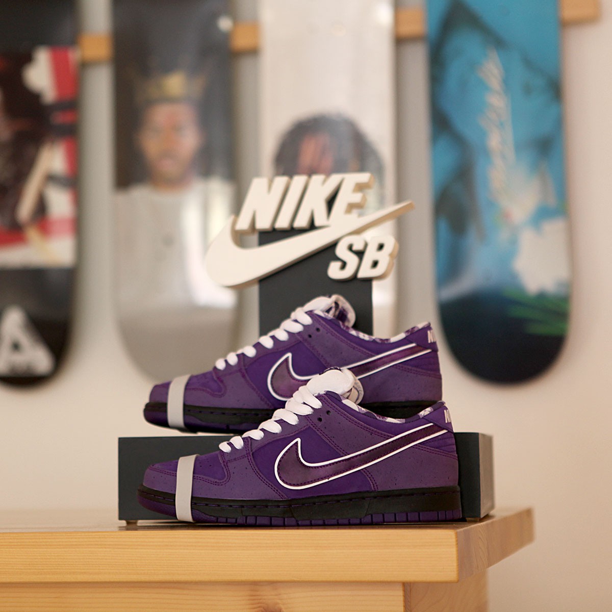 As part of the 10th anniversary of the release of the first Dunk SB Lobster variant, in collaboration with Nike SB and the Concepts shop, we are introducing the Nike SB Dunk "Purple Lobster" model.